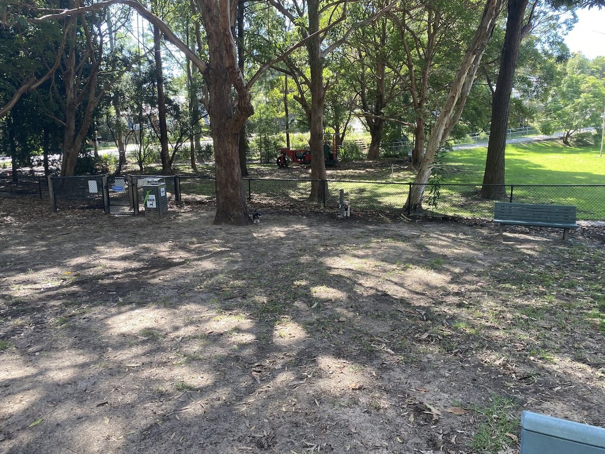 Small off leash park good for smaller dogs to run with fencing and food coffee shop Cassius nearby