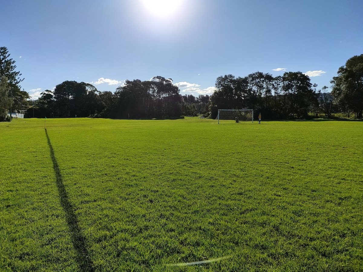 Adam Street Reserve is a sprawling, multi-use recreational space in Australia, primarily characterized by its vast, flat grassy fields. The area serves as a significant local hub for sports, with visible infrastructure for cricket and soccer, including pitches, goals, and tall floodlights for evening use. For dog owners, the reserve offers a large, open environment where dogs can run freely off-leash, though there is no evidence of a dedicated fenced enclosure or separate areas for different dog sizes. The perimeter is lined with mature trees providing natural shade, and basic amenities like picnic tables and trash cans are available for public use. The ground surface is consistently well-maintained grass, suitable for various activities. While a small brick building is present on-site, its specific function as a toilet block cannot be definitively confirmed from the images. The overall atmosphere is one of an expansive, community-focused green space that accommodates both organized sports and casual pet exercise.