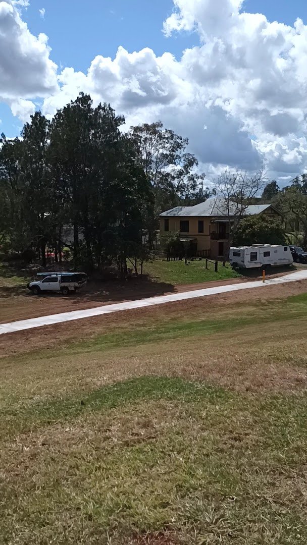 The Dog Off Leash Area in South Lismore is a spacious and versatile park featuring both large open grassy fields and dedicated fenced enclosures. The park offers a mix of terrains, including flat sports-style fields and naturally sloped areas with mature trees providing ample shade. Facilities include a paved parking lot, concrete walking paths, and a dirt/gravel trail through a wooded section. Within the fenced areas, visitors can find benches for seating and dog waste bag dispensers to maintain cleanliness. The fencing is primarily chain-link, ensuring a secure environment for dogs to play. The overall atmosphere is peaceful and natural, with a combination of manicured grass and more rugged, wooded spaces. It appears to be a well-maintained community asset suitable for various levels of dog activity and exercise.