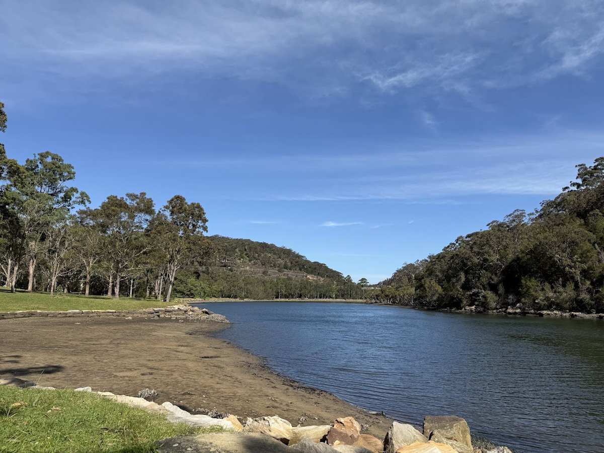 Forestville Park, incorporating Epacris Reserve, is a sprawling multi-use recreational area in Australia characterized by its vast open spaces and natural beauty. The park features expansive grassy fields, including a large sports oval equipped with goalposts, making it a popular spot for both organized sports and off-leash dog exercise. The terrain is mostly flat with gentle slopes, bordered by dense native bushland that provides ample natural shade. For families, the park offers a dedicated fenced playground area and a well-maintained picnic zone featuring multiple covered tables, benches, and BBQ facilities. A scenic waterway with a sandy and rocky shoreline borders one side of the reserve, offering a tranquil environment for walks. Practical amenities include trash cans and a large gravel parking area for visitors. While the playground is securely fenced with metal pickets, the larger fields are mostly open or bordered by low timber rails, allowing for a sense of freedom. The overall atmosphere is serene and versatile, catering to pet owners, athletes, and families seeking a spacious outdoor retreat.