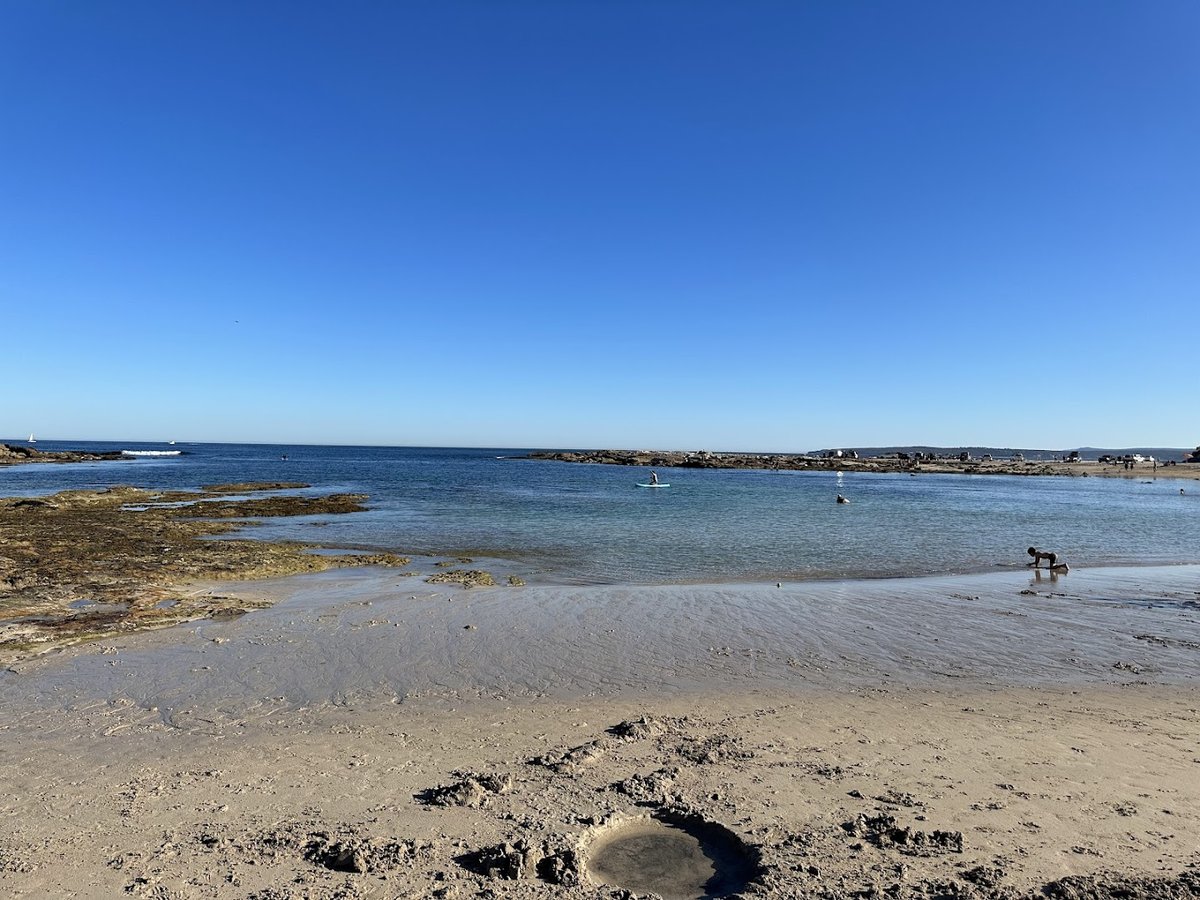Boat Harbour Park is a scenic coastal dog-friendly area located in Australia, characterized by its expansive sandy beaches and clear blue waters. Based on the images, it functions as an off-leash beach rather than a structured, fenced-in park. The terrain is primarily sand, bordered by rocky cliffs and grassy dunes, providing a large, open space for dogs to run and swim. There is no visible fencing, agility equipment, or designated separate areas for different dog sizes. The environment is natural and lacks typical park amenities such as benches, trash cans, water fountains, or toilets in the immediate beach vicinity. One notable feature is the ability for vehicles to drive and park directly on the sand, facilitating easy access for visitors. The atmosphere is tranquil and rugged, offering a picturesque setting for water-loving dogs. While there is no artificial shade or structures visible, the vast shoreline and shallow waters provide ample opportunity for recreation and exercise in a beautiful natural landscape.