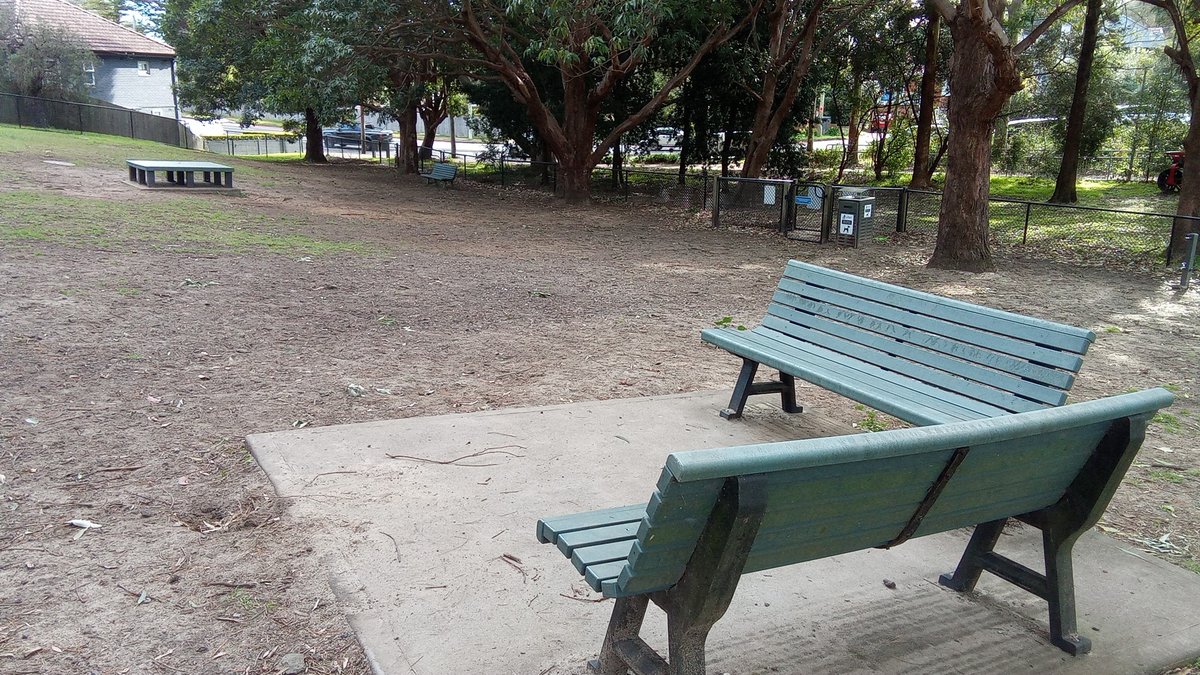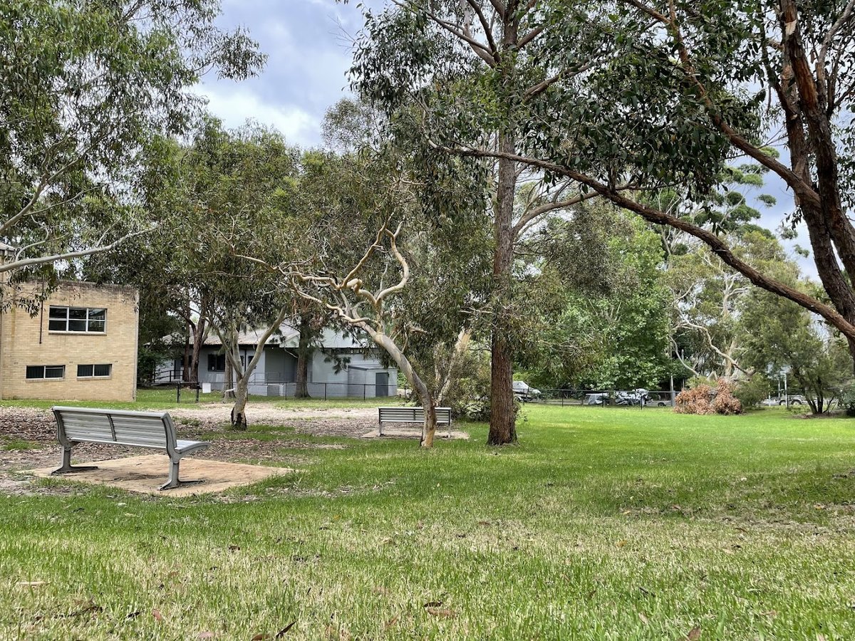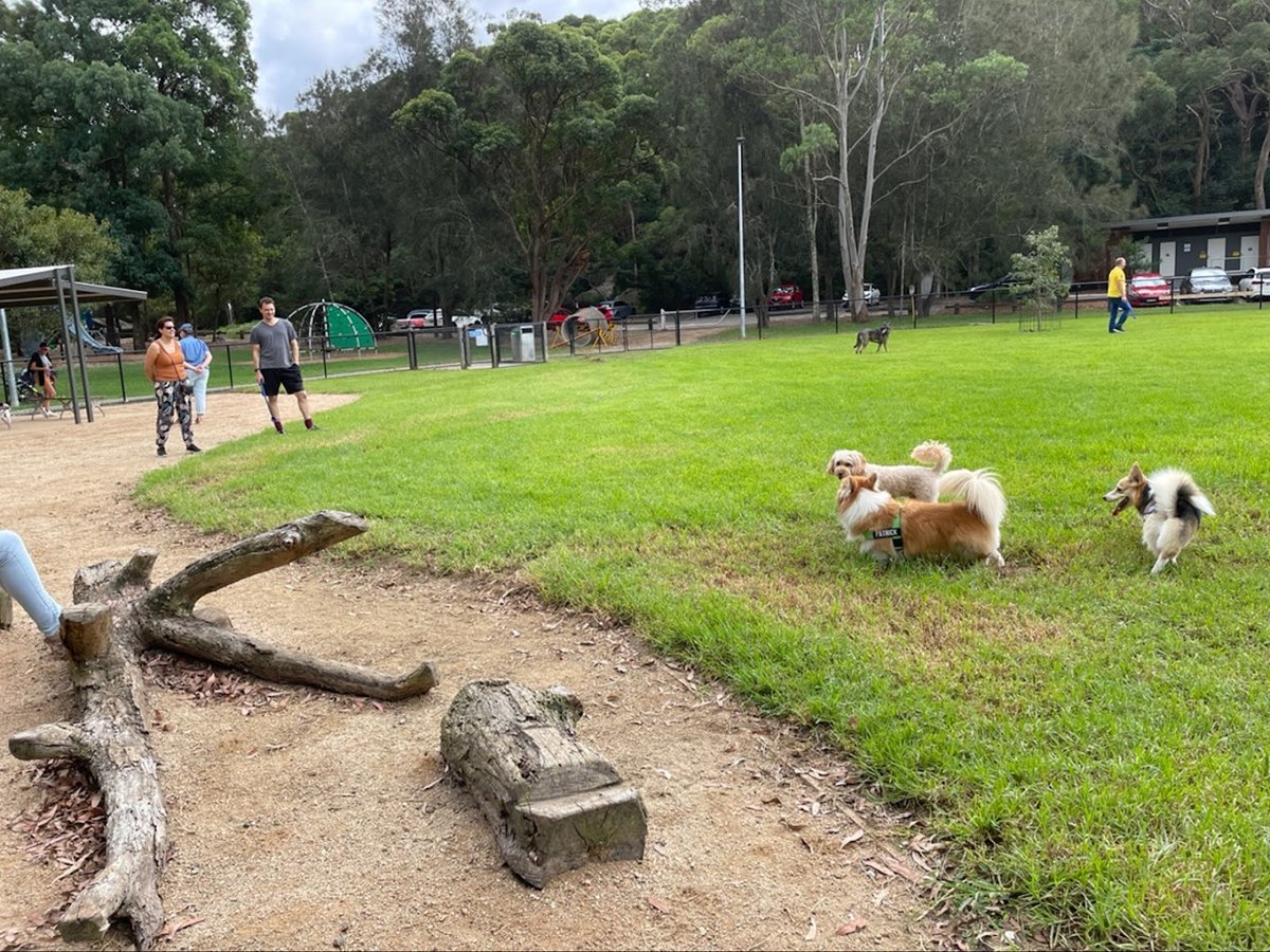 The 'Dog off-leash area fully fenced' in Australia is a well-appointed recreational space for pets and owners. Spanning a significant area, the park features multiple fenced sections, including a large, open grassy field perfect for high-energy play and more secluded, shaded zones with a natural dirt and mulch surface under mature trees. Essential amenities are plentiful, with numerous benches strategically placed throughout, several trash cans equipped with dog waste bag dispensers, and dedicated water fountains for canine hydration. The park is part of a larger community hub, as evidenced by the adjacent playground, tennis courts, and public toilet facilities. Its proximity to the waterfront adds a scenic element to the visit. The atmosphere is one of a safe, community-focused environment where dogs can socialize off-leash. The combination of open space, natural shade, and practical facilities makes it a highly functional and pleasant destination for local dog owners, providing ample room for exercise and socialization within a secure perimeter.