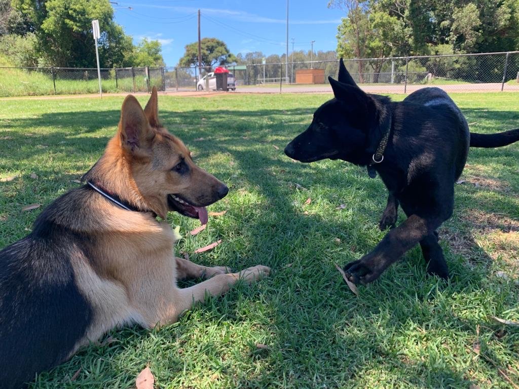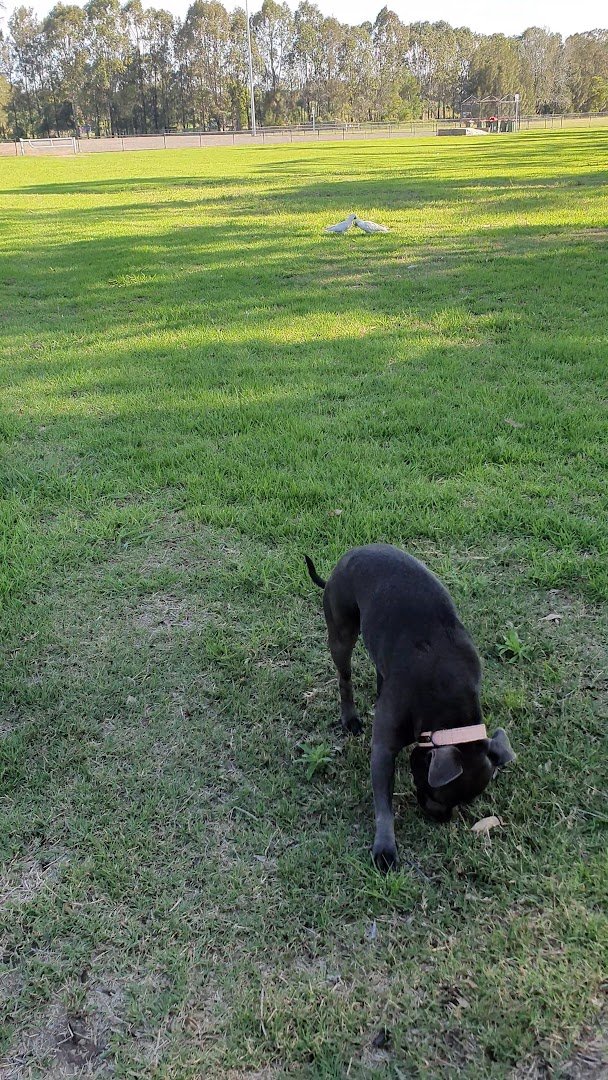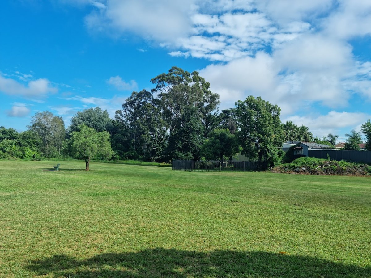 The Vale of Ah Dog Park is a spacious and well-maintained facility featuring both large open grassy fields and dedicated fenced-in areas. The park offers a mix of flat terrain and gentle slopes, providing ample room for dogs to run and play. Fencing is primarily black chain-link, securing specific zones. Facilities include several benches for owners, paved walking paths, and trash cans for waste disposal. While some areas are wide-open and appear to be off-leash friendly, others are more structured. Mature trees provide natural shade around the perimeter, and some sections feature modern amenities like shade umbrellas and landscaped mounds. The overall atmosphere is peaceful and community-oriented, set against a backdrop of lush greenery and nearby residential areas. The presence of tall light poles suggests the park may be usable during early evening hours. The variety of spaces, from narrow fenced runs to expansive hills, makes it suitable for different dog energy levels and training needs.