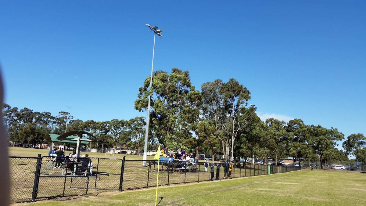 Progress Park is a multi-faceted recreational area featuring expansive open grassy fields ideal for off-leash dog activities. The park includes a dedicated fenced area, likely for sports or specific dog use, equipped with sheltered picnic tables and spectator seating. The ground surface is predominantly natural grass, which varies from lush green to slightly dry depending on the area and season. Mature trees provide significant natural shade around the perimeter, and tall light poles suggest the facility is usable during evening hours. Beyond the open fields, the park offers diverse environments including a sandy beach area along a calm waterway and scenic coastal views from elevated grassy slopes. Facilities such as benches and trash cans are visible, and the presence of portable agility equipment indicates a dog-friendly atmosphere. The overall environment is spacious and versatile, catering to both active play and relaxed strolls in a natural setting.