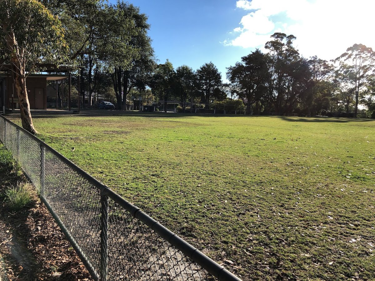 A nice oval used for Saturday soccer games during winter with a canteen. There is limited street parking and the toilets have less capacity but still a nice place to play. There is no play equipment at the park at all.