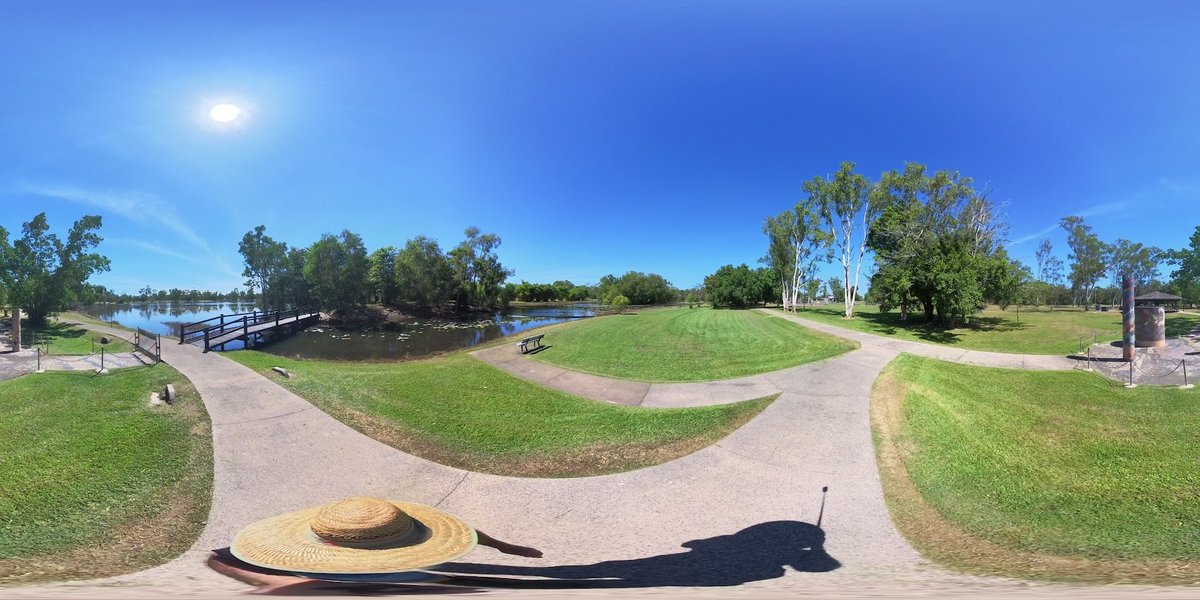 Marlow Lagoon Pet Park is a spacious and well-equipped recreational area located in Marlow Lagoon, Northern Territory. The park features a dedicated fenced dog exercise area, allowing pets to run off-leash safely. This enclosed space is primarily surfaced with grass and includes amenities such as metal benches for owners. Beyond the fenced area, the larger park offers extensive open green spaces, mature trees providing natural shade, and a network of paved concrete walking paths suitable for leashed walks. A prominent feature is the large lagoon, which is crossed by a wooden bridge and surrounded by lush vegetation, though visitors are cautioned by signs regarding crocodile sightings. For families, there is a significant playground area protected by large overhead shade sails. Practical facilities include public toilets and accessible pathways. The overall atmosphere is one of a large, multi-use community park that caters well to dog owners while providing diverse recreational opportunities in a natural Australian setting. The terrain is mostly flat with some gentle slopes and well-maintained lawns.