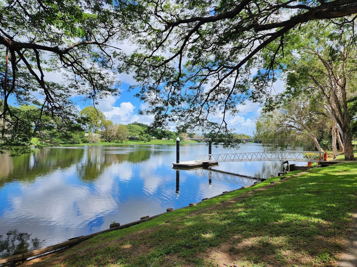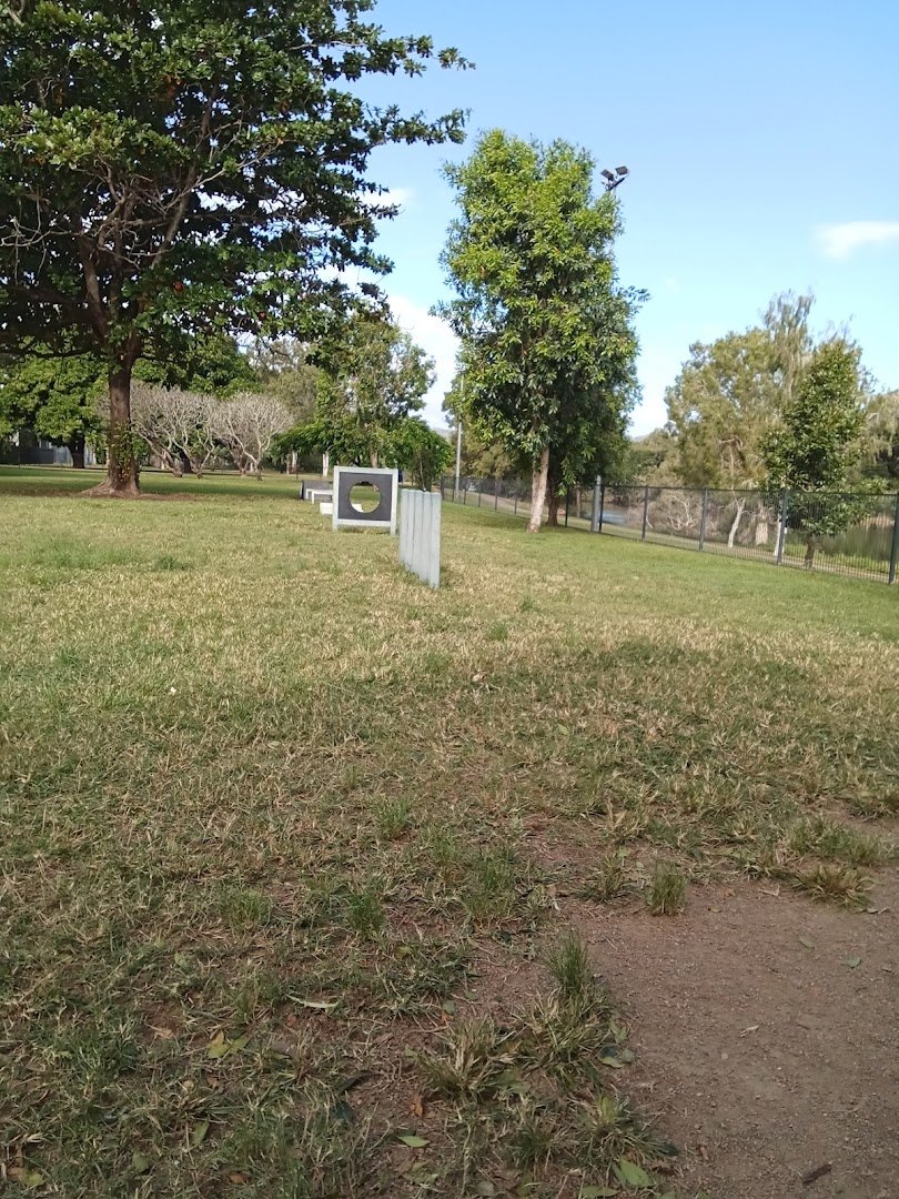 Rossiter Park Off Leash Dog Park is a scenic and expansive recreational area situated along the picturesque Ross River. The park features a large, fully fenced off-leash enclosure that provides a safe environment for dogs to exercise and socialize. The terrain is primarily covered in well-maintained grass, with some dirt patches in high-use zones, and a convenient concrete pathway traversing the space. One of the standout features is the inclusion of various agility equipment, such as an A-frame, tunnels, and jumping hoops, catering to active dogs. Ample natural shade is provided by numerous mature trees scattered throughout the park, ensuring a comfortable experience even on sunny days. For human visitors, the park offers several benches within the fenced area and multiple picnic tables situated on paved pads overlooking the water. The presence of park lighting suggests the facility is accessible during early morning or evening hours. With its tranquil riverside setting and comprehensive facilities, it offers a high-quality outdoor experience for both pets and their owners.