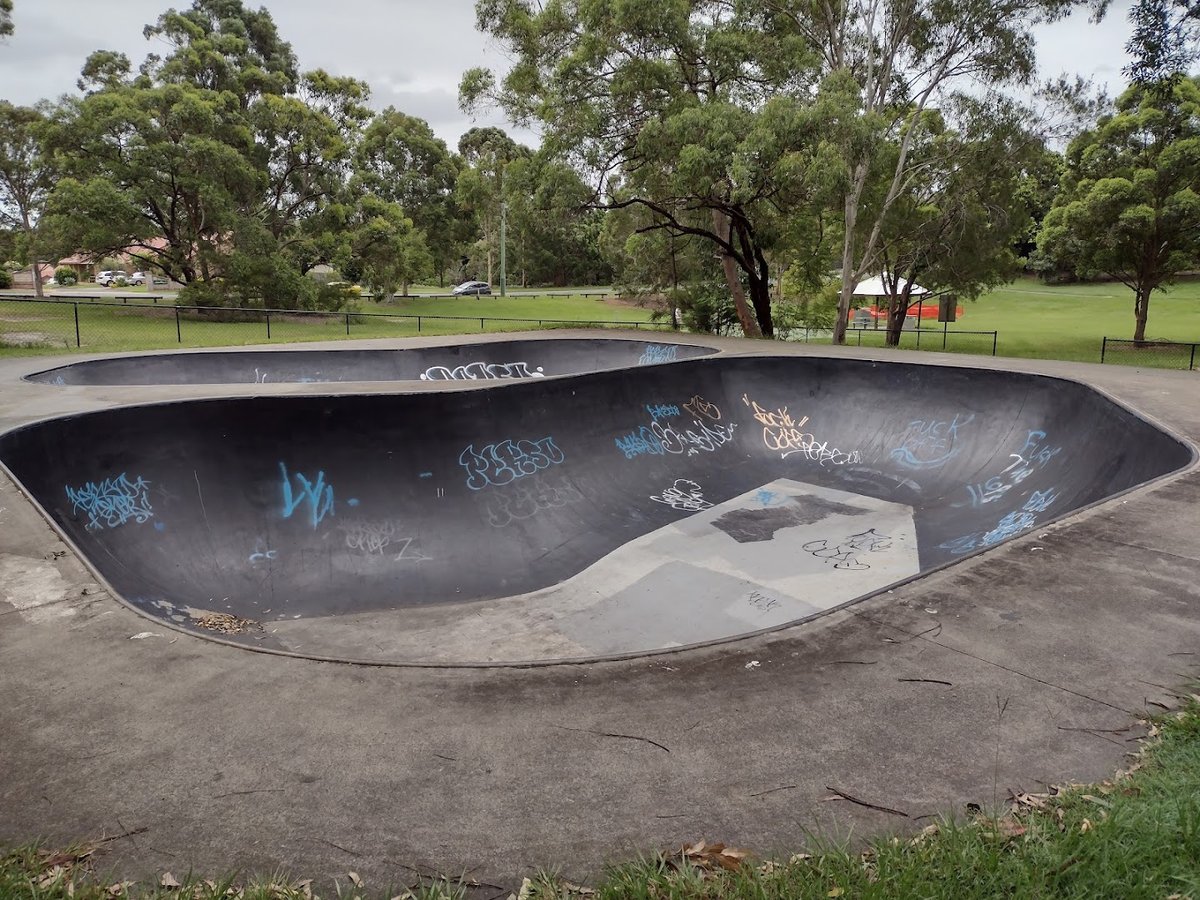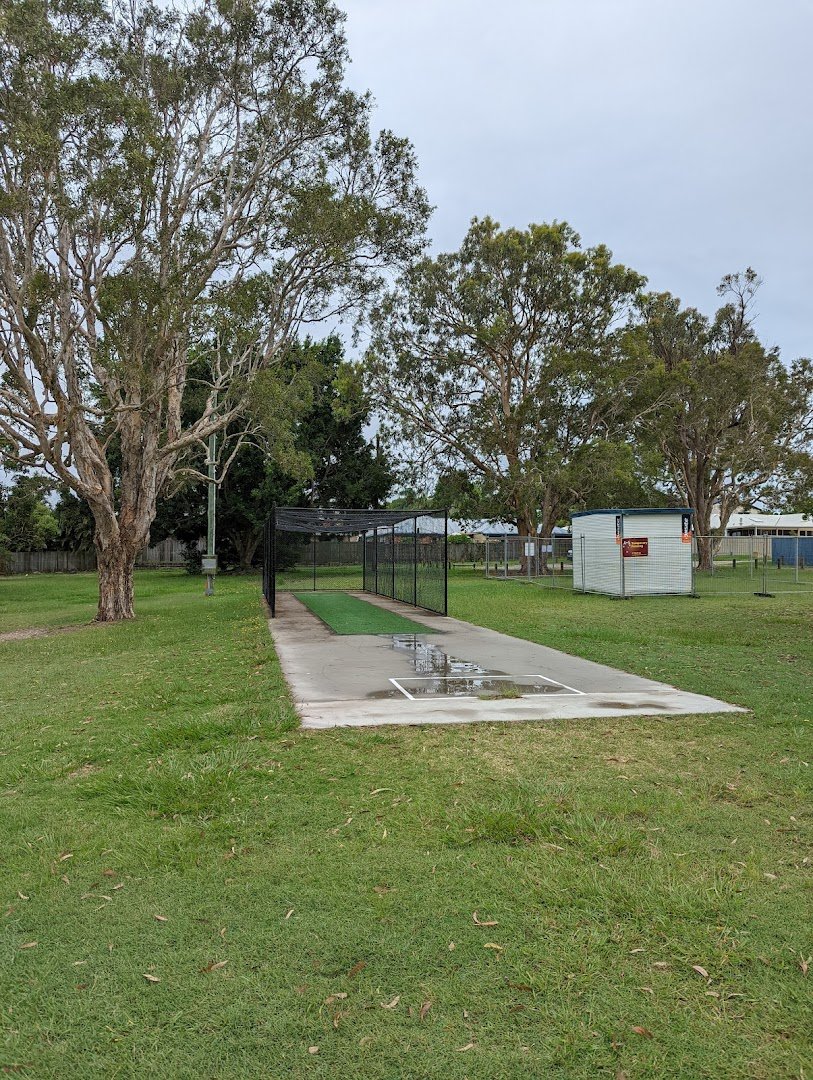 Windemere Road Dog Off Leash Park is a comprehensive community recreation area in Australia that caters to a variety of interests. The dedicated dog park section is fully enclosed with chain-link fencing, providing a safe off-leash environment. This area features a spacious grass surface, though some high-traffic spots near agility equipment show wear. The agility course includes a blue tunnel, green A-frames, and a hoop. For human visitors, there are small timber shelters with benches inside the fenced area, and a larger picnic pavilion outside with a table and BBQ grill. The wider park grounds are quite expansive, featuring a playground with a slide and climbing frame, a concrete skate bowl with graffiti art, and cricket practice nets. Mature trees are scattered throughout, offering ample natural shade alongside the man-made structures. The park's atmosphere is open and inviting, with well-defined paths and clear signage, such as 'Please Close Gate' instructions at the entry points. It serves as a versatile hub for pet exercise, children's play, and community gatherings.