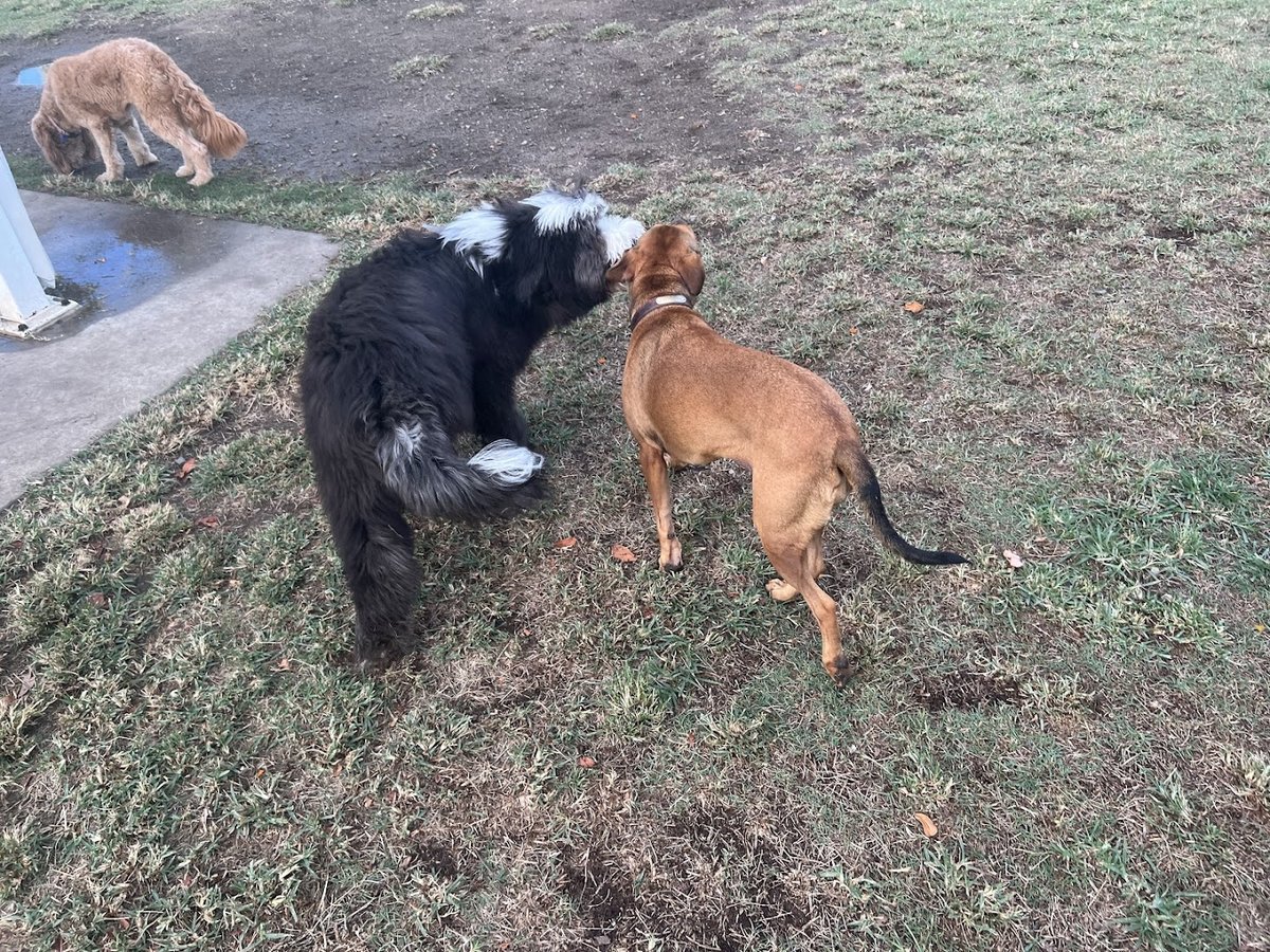 Left a lot to be desired. Tiny dog park, dirty bench, patchy, muddy and unkempt