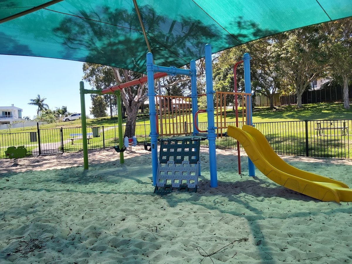 Good sized, fully fenced off-lead park. Obstacles, bit of a hill, big areas to run, trees etc to sniff around. Was great for active kelpie and curious little dog. Gets boggy and muddy easily though. Reasonable amount of parking.