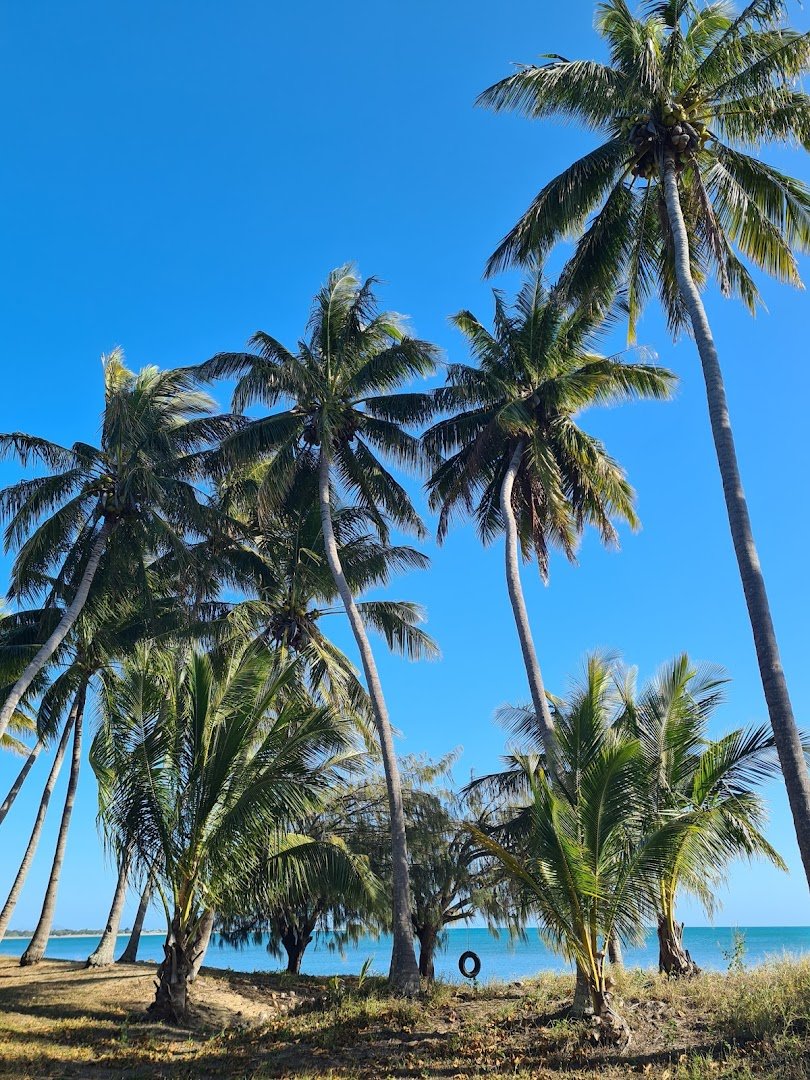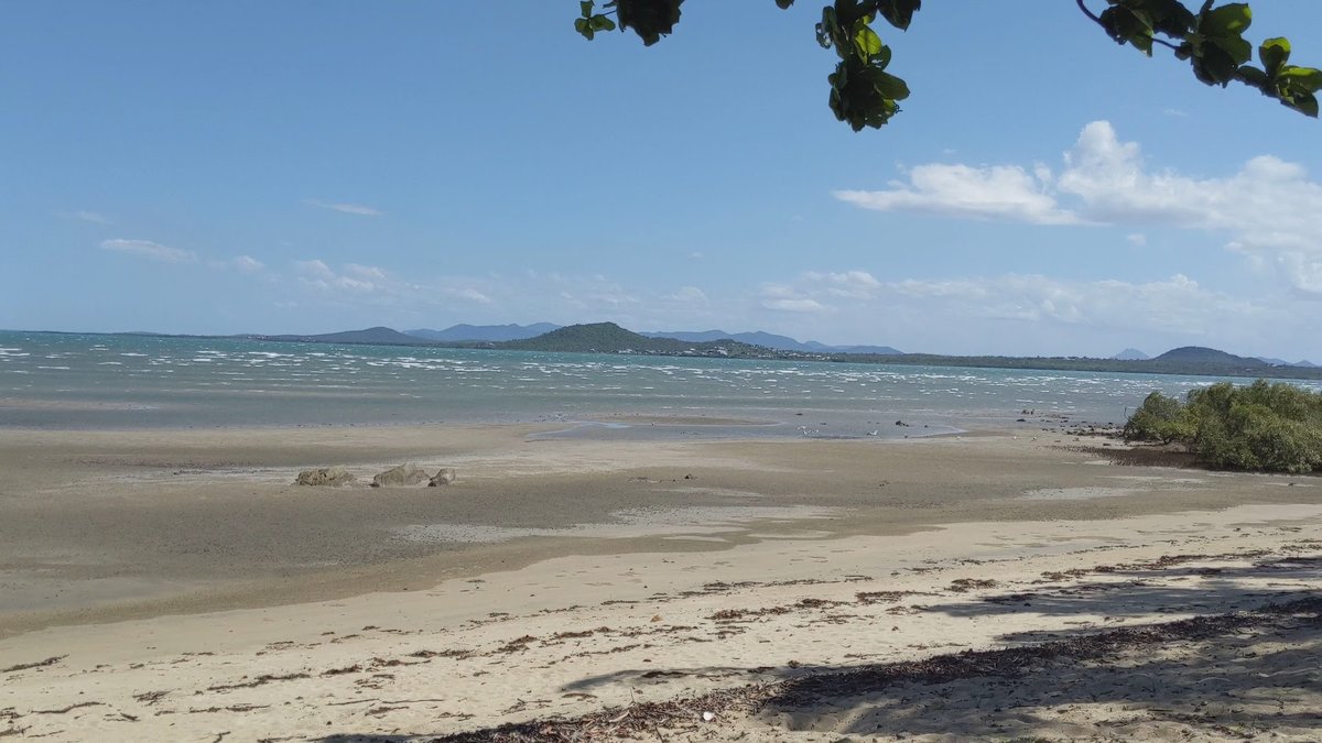 This dog-friendly beach, identified in part as Eddie McCane Place and associated with the Rose Bay Beach area, offers an expansive off-leash environment for dogs to explore. The park is characterized by its vast sandy shoreline, which transitions into shallow, calm waters perfect for dogs that enjoy swimming. The ground surface is primarily natural sand, with some rocky outcrops and grassy verges near the access points. While the beach itself is not fenced, it provides a massive open space for exercise and play. Shade is available along the upper edge of the beach, provided by a variety of coastal trees, including numerous tall palm trees. Facilities include essential amenities such as trash cans and dog waste bag dispensers located near the entrance signs. There are also picnic tables and even a tire swing, suggesting a family-friendly atmosphere. The overall vibe is scenic and relaxed, with beautiful views of distant mountains and, in some areas, city skylines. It is a natural coastal retreat where dogs can run freely on the sand and splash in the ocean.