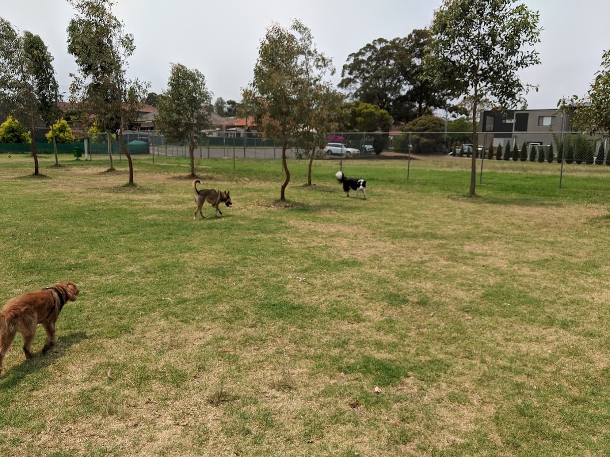 This expansive dog off-leash area in Australia offers a diverse and natural environment for pets and their owners. The park is characterized by its significant size, featuring vast, open grassy fields perfect for high-energy activities like fetch, as well as more secluded, wooded sections with mature trees that provide abundant natural shade. The terrain is varied, including flat plains and gentle rolling hills, which adds to the park's scenic appeal. Facilities are well-maintained and include paved walking paths that meander through the space, a dedicated water fountain for hydration, and conveniently placed trash cans. A sheltered gazebo provides a spot for owners to rest or have a picnic. While the area is designated for off-leash use, the images do not show a continuous perimeter fence, suggesting it is an open-plan park where dogs should be under good voice control. The overall atmosphere is peaceful and community-oriented, with plenty of room for multiple dogs to play without feeling crowded. Additional amenities like bike racks and lighting poles near the paved areas enhance the park's accessibility and utility for the local community.