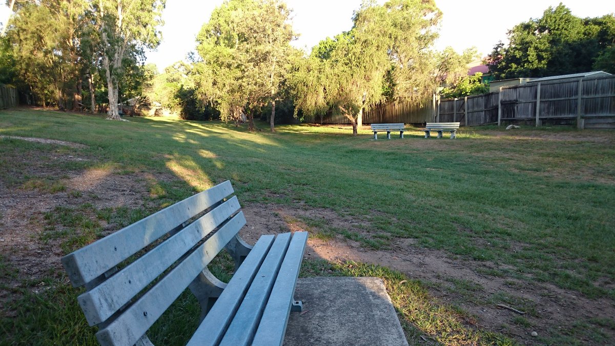 The Dog Park at Clive McDermott Place offers a spacious and natural environment for dogs to exercise and socialize. The park features expansive grassy fields with gentle slopes, providing plenty of room for high-energy activities. It is securely enclosed by chain-link fencing, ensuring a safe off-leash experience. For the comfort of both pets and owners, the park is equipped with several park benches and a covered picnic shelter that provides relief from the sun. Mature trees are scattered throughout the area, offering additional natural shade. A dedicated water station with a dog-level bowl is available to keep pets hydrated. For those interested in training, the park includes agility equipment such as an A-frame. The ground surface is primarily grass, though some areas show wear with exposed dirt, and concrete pads are used under the water fountain and shelter. A unique feature nearby is a natural sandy creek bed, though it appears to be outside the main fenced area. Overall, the park provides a well-maintained and functional space for the local community.