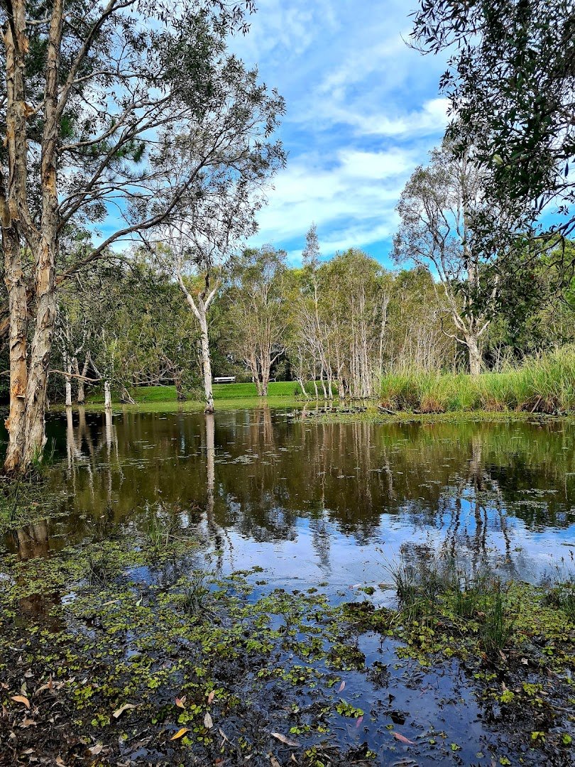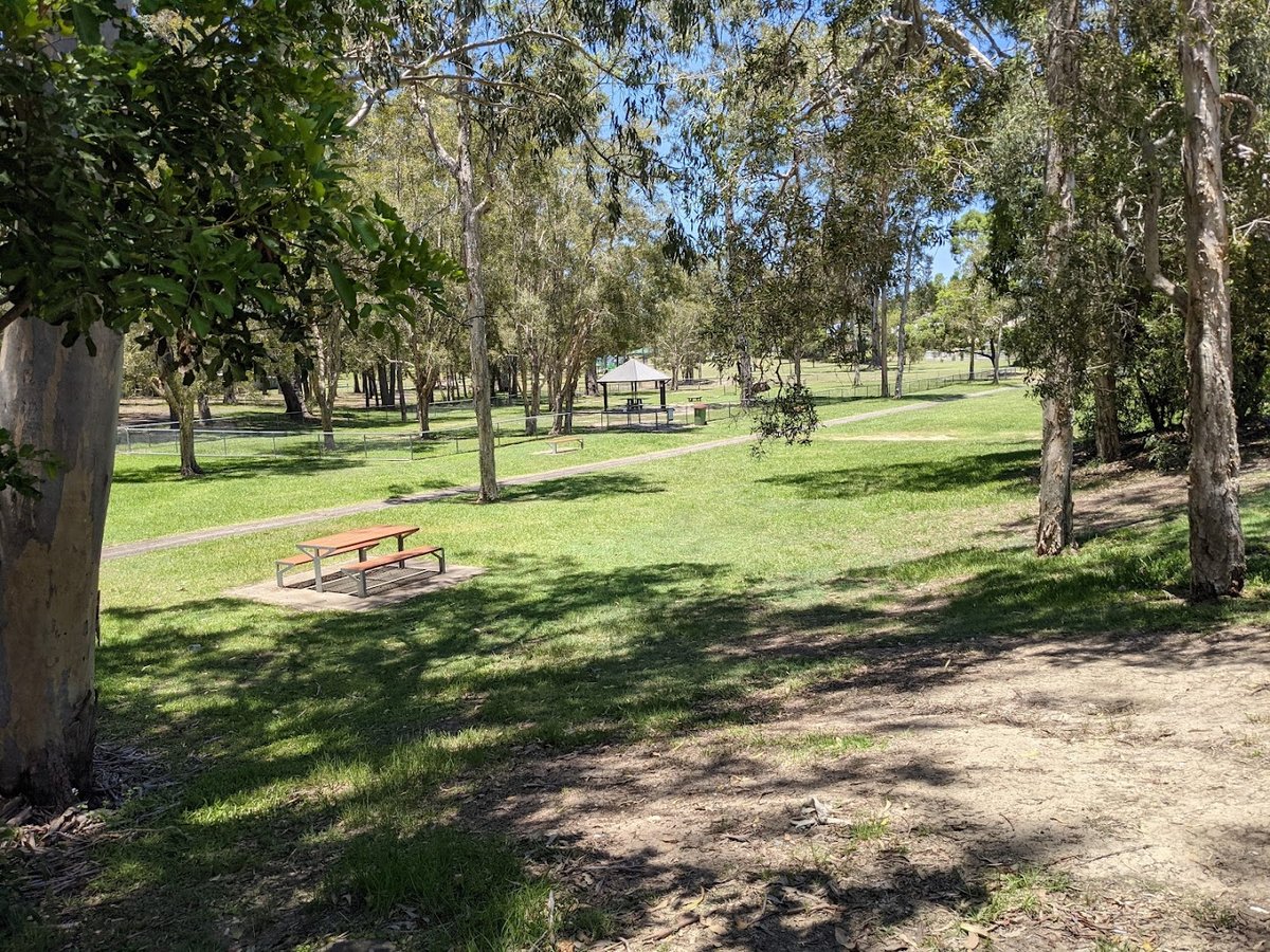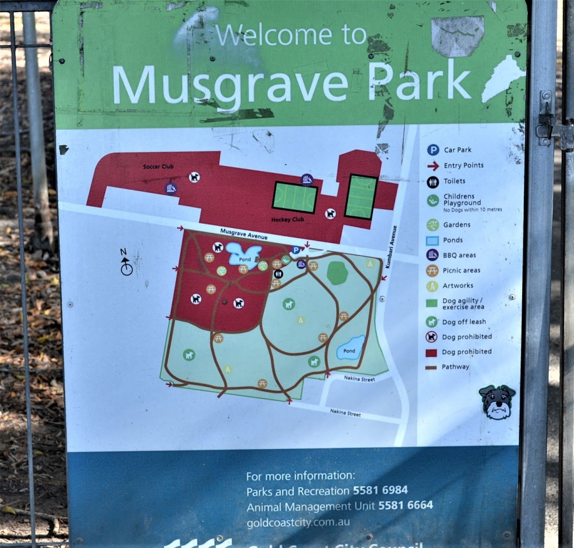 Musgrave Offleash Agility Dog Park is a large, multi-faceted recreational space located within the broader Musgrave Park in Australia. The park features expansive grassy fields and significant natural shade provided by numerous mature trees, creating a comfortable environment for both pets and owners. A key highlight is the dedicated fenced dog agility and exercise area, which includes specialized equipment like hoops and frames for training and mental stimulation. Beyond the fenced sections, the park offers designated off-leash zones where dogs can roam freely across the wide-open spaces. The park's natural landscape is further enriched by scenic ponds, which add to the tranquil atmosphere. Facilities are comprehensive and well-maintained, including public toilets, multiple picnic areas equipped with tables and shelters, and BBQ stations for community use. A children's playground is also available on-site, though it is a dog-prohibited zone. Paved pathways wind through the park, and benches are conveniently placed along the trails. The overall atmosphere is serene and community-oriented, offering a perfect blend of open space for energetic play and structured areas for agility training.