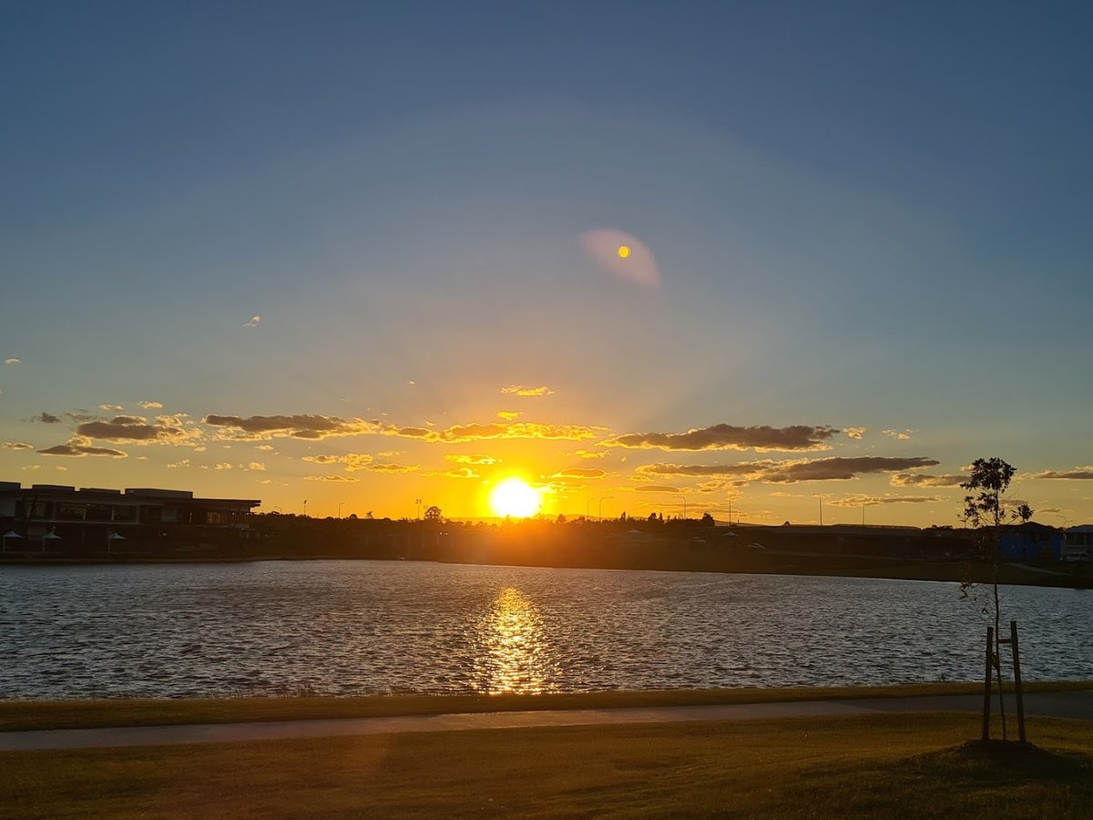 Capestone Dog Park is a scenic off-leash area located adjacent to a picturesque lake in Australia, offering a serene environment for both pets and owners. The park features a large, fully fenced space secured by black chain-link fencing, which provides a safe boundary while maintaining views of the surrounding water and neighborhood. The ground surface is primarily natural grass, though high-traffic areas show some wear with exposed dirt. Facilities include multiple wooden benches sheltered by sturdy pergola-style structures, offering essential shade and a place for owners to rest. For active dogs, the park includes agility equipment such as a wooden A-frame ramp. The terrain is mostly level but incorporates small grassy mounds to add variety to the play area. Mature trees are scattered within the enclosure and along the perimeter, providing additional natural shade. The park's proximity to the lake allows for sightings of local wildlife, including black swans, enhancing the overall atmosphere. While specific amenities like water stations or waste bins are not explicitly captured in these views, the infrastructure indicates a well-designed and popular community asset.