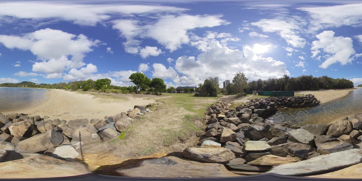 Palm Beach Dog Off-Leash Beach is an expansive coastal recreation area located in Palm Beach, Australia. It features a combination of wide sandy ocean beaches and calmer waters along Currumbin Creek, providing diverse swimming options for dogs. The park includes a dedicated off-leash area as clearly indicated by the parkland's informational signage. The ground surface is primarily soft sand on the beach, transitioning into well-maintained grassy parklands further inland. Facilities identified include public toilets, beach showers, parking lots, and a nearby playground. A specific section of the grassy parkland is equipped with dog agility features such as a tunnel, ramps, and weave poles, alongside waste bins and seating. The atmosphere is open, scenic, and social, offering vast spaces for dogs to exercise freely. While there is no perimeter fencing around the beach, the natural boundaries and designated zones manage the off-leash activity. Shade is available under scattered trees within the parkland areas, though the beach itself is largely exposed.