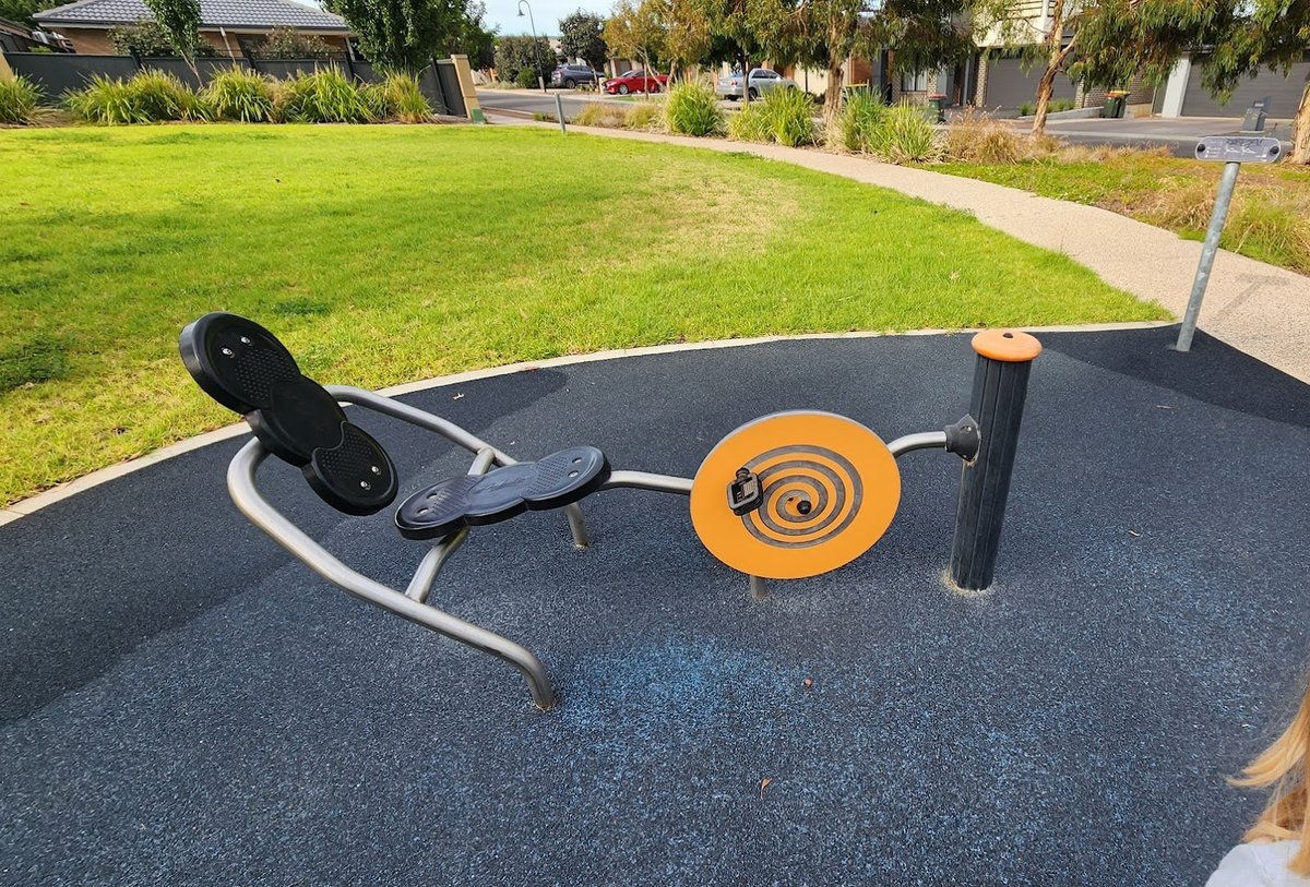 Pooch Park at Blakes Crossing is a spacious and well-maintained community dog park located within a larger recreational precinct. The facility features large, securely fenced off-leash areas, allowing dogs to run freely. The ground surface is a mix of natural grass and dirt, which provides a realistic outdoor experience but may vary with the seasons. For canine enrichment, the park includes basic agility elements such as large logs and weave poles. Pet owners can enjoy the outdoors from several benches placed throughout the area, with some positioned under large shade structures for protection from the sun. The park's perimeter is defined by sturdy chain-link fencing. Beyond the immediate dog enclosures, the surrounding parkland offers scenic views of a local pond, paved walking trails, and outdoor exercise equipment. The overall atmosphere is tranquil and inviting, making it a popular spot for local residents and their pets to socialize and exercise in a safe, open environment.