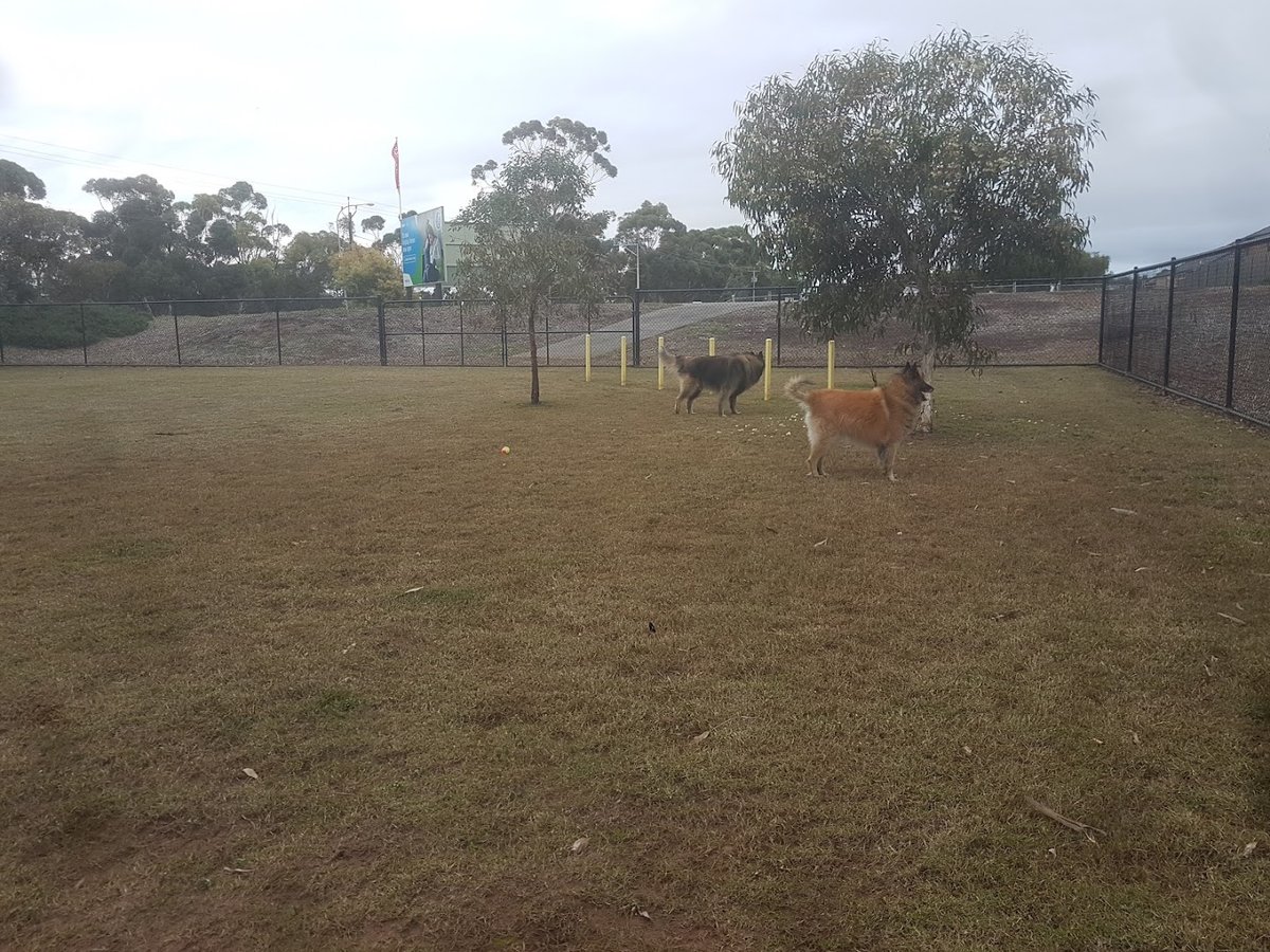 Fairly large single dog park, no separation of large and small dogs. A rubbish bin is stocked with poo bags. Water fountain which allows emptying of the dog bowl is available. Some agility equipment including a ramp and weave poles. 2 bench …