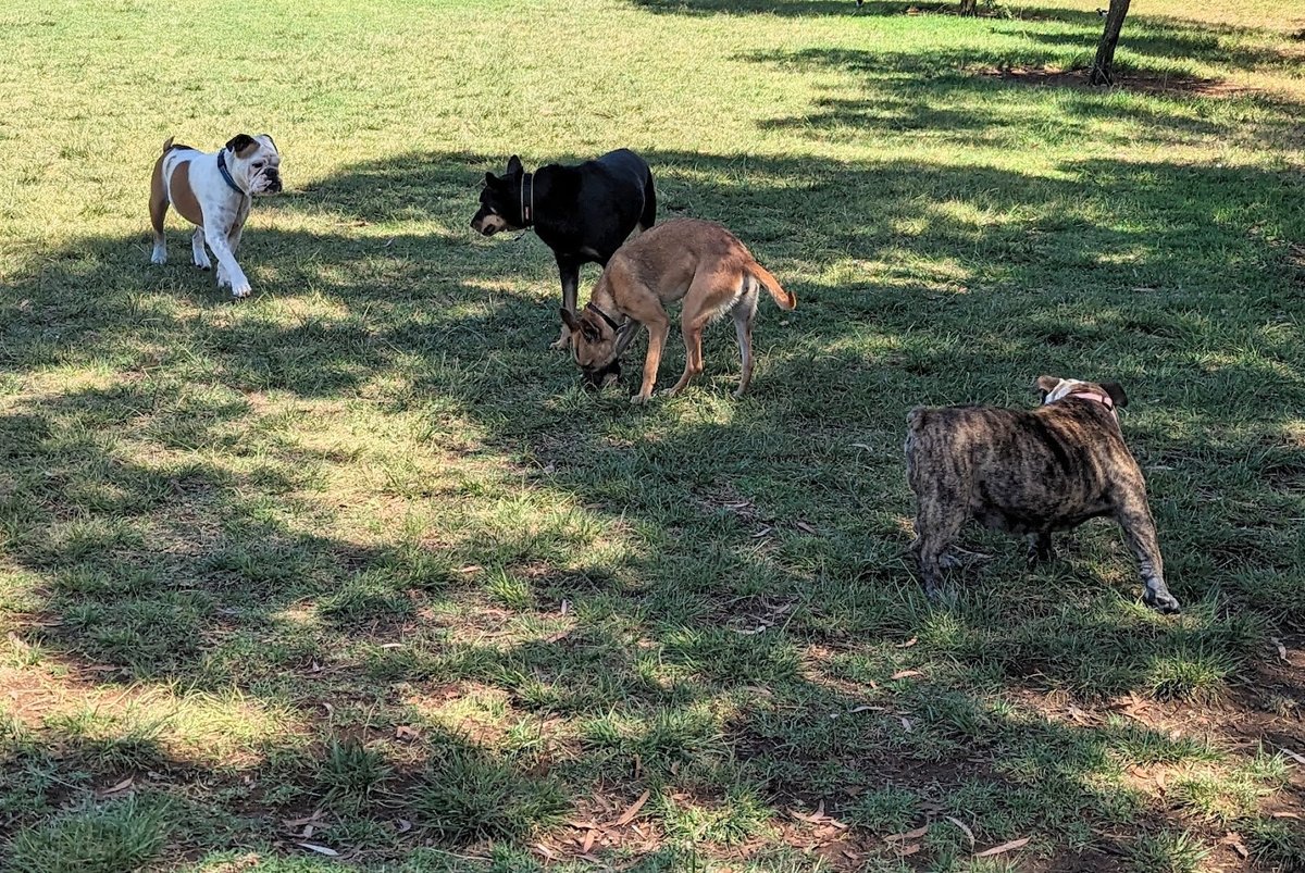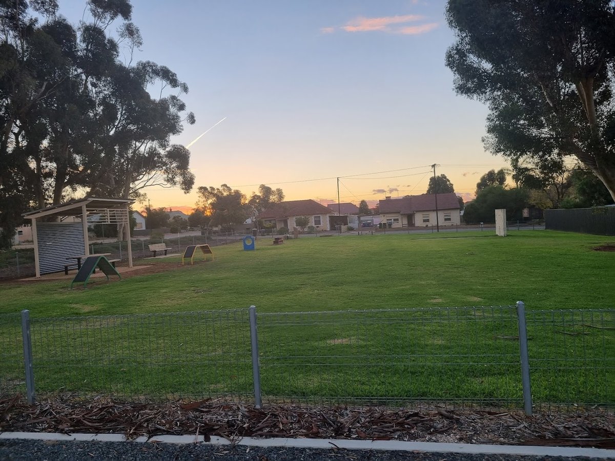 Johnstone Park Dog Park in Australia offers a spacious and secure environment for canine exercise and socialization. The park features a large, flat expanse of well-maintained grass, ideal for high-energy play and running. It is fully enclosed by sturdy metal mesh fencing, ensuring a safe off-leash experience for all visitors. For canine enrichment, the facility includes basic agility equipment such as a small A-frame and a tunnel. Human visitors can enjoy the convenience of a sheltered picnic area equipped with a table, as well as additional park benches scattered for seating. Mature trees around the perimeter provide patches of natural shade, complementing the man-made shelter. The park is equipped with essential amenities like trash cans to help maintain cleanliness. Beyond the main fenced enclosure, the surrounding parkland offers scenic walking trails, including a small bridge over a rocky creek bed, perfect for on-leash exploration. Located within a residential setting, the park has a welcoming community feel, making it a popular spot for local dog owners to gather and interact while their pets play.