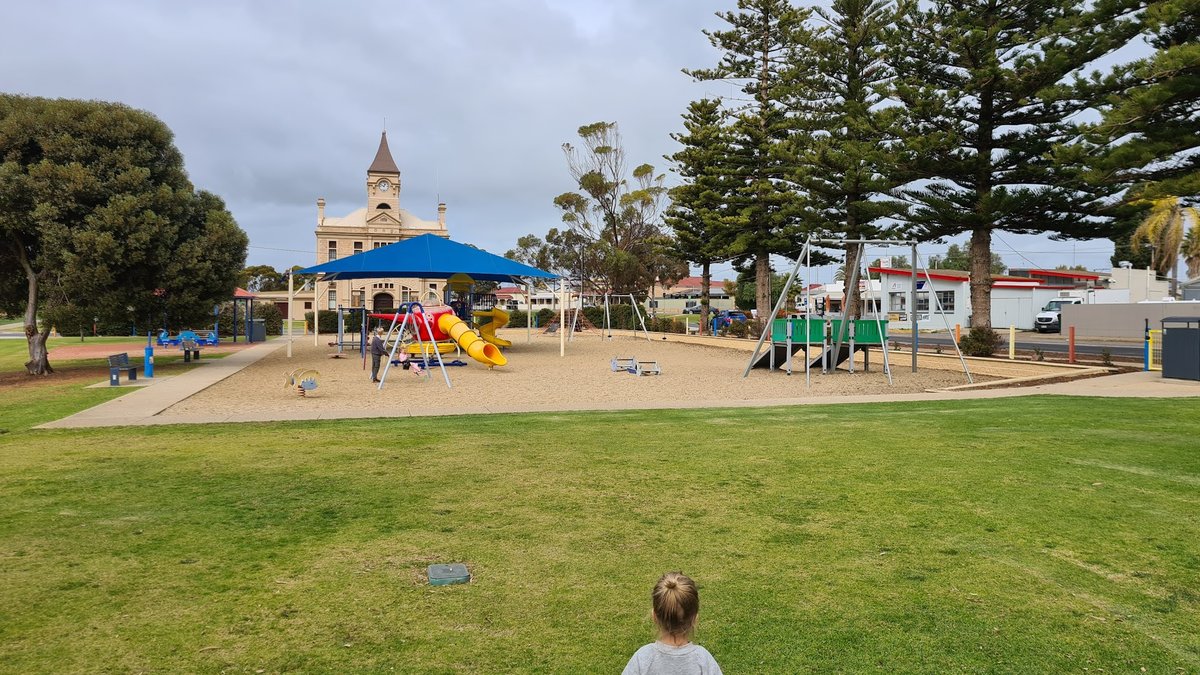 Travelling around the Yorkes, with our young Kelpie, so pleased to find this little gem. Right in town, short walk to shops.Toilets across the road, and a large BBQ & undercover seating area outside the park. Congrats to the council. Fabulous park. Our girl Kali loved it.