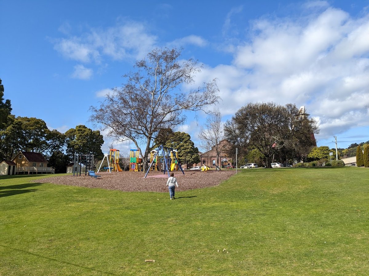Has a big outdoor play area with skate park & walking tracks around the park. Wide open spaces