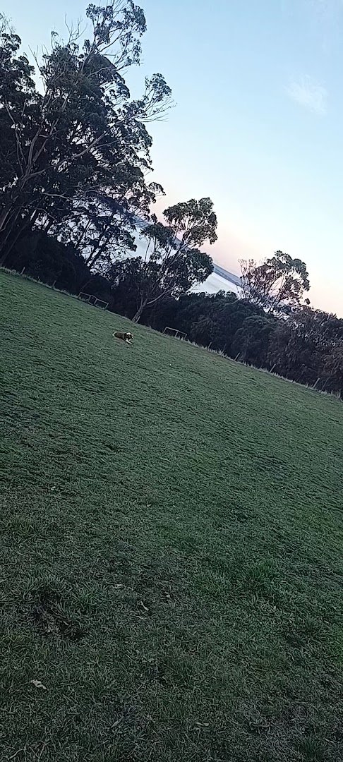 Very nice fenced off leash area, huge place all up hill and agility equipment. There is a raintank for water but in summer with no rain it might be empty.