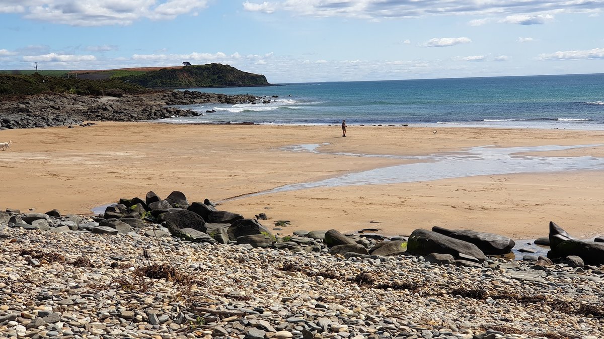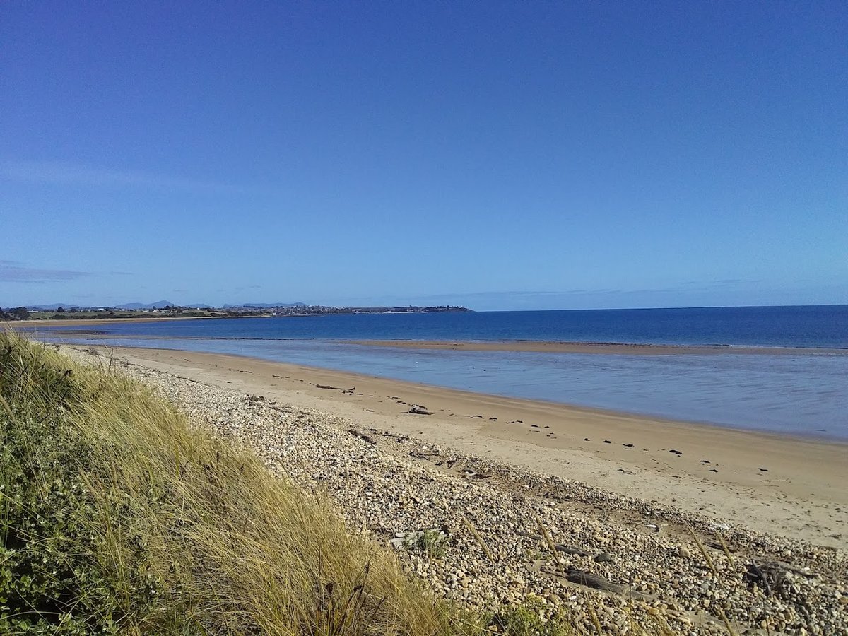 Back Beach in Devonport, Tasmania, offers a diverse and expansive environment for dogs and their owners to enjoy. The area features a vast, scenic coastline characterized by wide sandy stretches, pebble-covered sections, and rugged rocky outcrops, providing a perfect natural playground for off-leash activities. In addition to the extensive beach access, there is a dedicated fenced-in grassy area designed for more controlled play, which includes basic agility equipment such as a large concrete tunnel. This fenced section is bordered by a sturdy chain-link fence and is surrounded by mature trees that offer some natural shade for visitors. The overall atmosphere is tranquil and rugged, capturing the beautiful essence of the Tasmanian coast. While the images clearly highlight the large open spaces and natural beauty, specific man-made facilities like benches, water stations, trash cans, or restrooms are not visible in this particular set of photographs. It serves as a popular and picturesque destination for local dog owners to let their pets run freely along the shoreline or interact in the enclosed park space.
