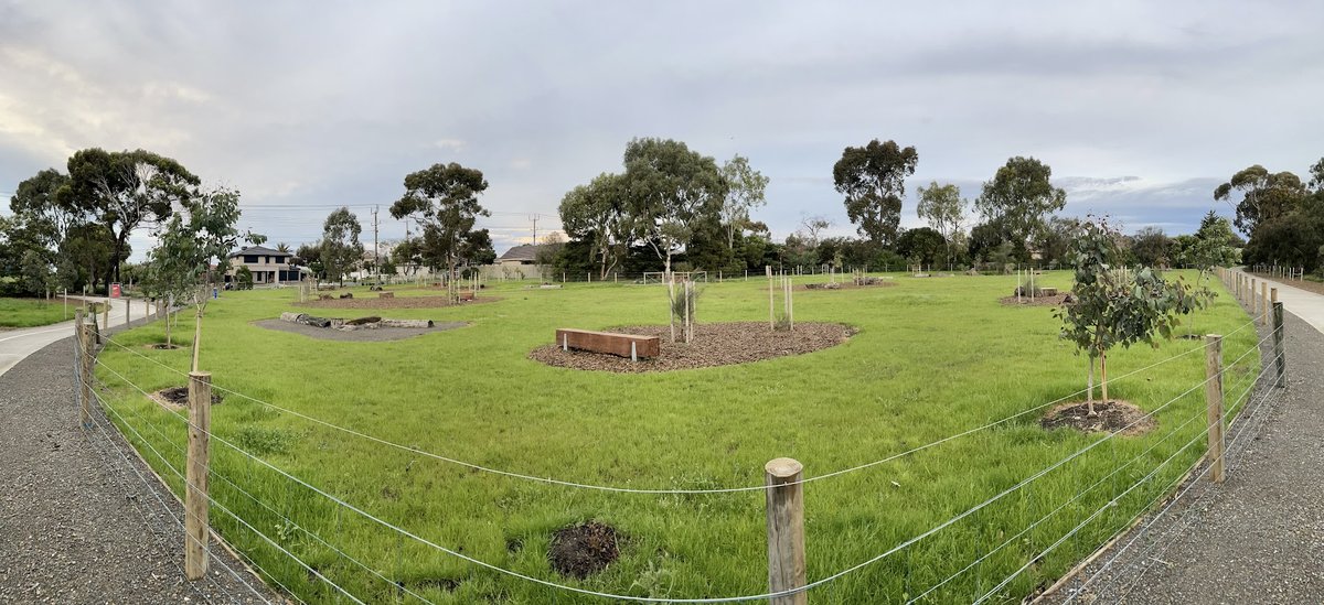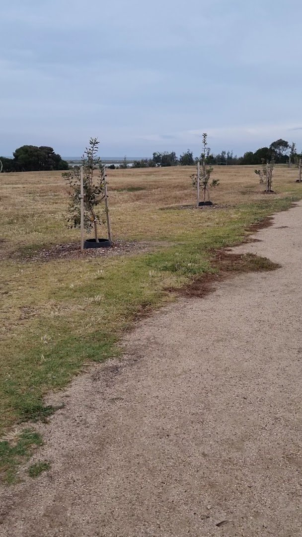 Doug Grant Reserve Dog Off Leash Area is a spacious and versatile public park located in Australia, offering a blend of expansive open fields and a dedicated fenced enclosure. The reserve is characterized by its vast grassy landscapes, providing ample room for dogs to run and play off-leash, as clearly marked on the informative park signage. A specifically fenced-in section offers a more secure environment, featuring young trees, sturdy wooden benches, and natural log elements that serve as both seating and exploratory features for pets. The ground surface is predominantly natural grass, which transitions between lush green and drier patches, alongside well-maintained gravel and paved shared-use paths ideal for walking and cycling. While the park provides some shade through scattered mature trees and newly planted saplings, much of the terrain remains open. Visitors can enjoy scenic views of the adjacent Laverton Creek wetlands and coastal trails. The atmosphere is peaceful and community-focused, though owners must respect the designated habitat protection zones where dogs are prohibited to safeguard local migratory and nesting bird populations.
