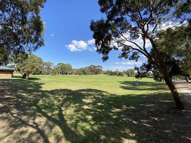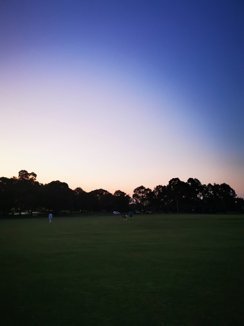 Macleay Park Dog Off Leash Area in Australia offers a sprawling, multi-use recreational space characterized by its vast open green fields and mature eucalyptus groves. The park features a large, well-maintained grassy oval, which includes a cricket pitch, making it ideal for long-distance fetch and high-energy exercise. Surrounding the main field are wooded sections with dirt paths and natural leaf litter, providing a more sensory experience for dogs and ample shade for owners. While the area is designated for off-leash use, it is not a fully enclosed or fenced dog park, relying instead on natural boundaries and distance from roads. Facilities visible include standard council trash cans and a pavilion building that likely provides public toilets. The atmosphere is serene and community-oriented, particularly during dawn and dusk when local residents gather. There are no specialized agility equipment or separate zones for different dog sizes, but the sheer scale of the park allows for plenty of personal space for various activities.