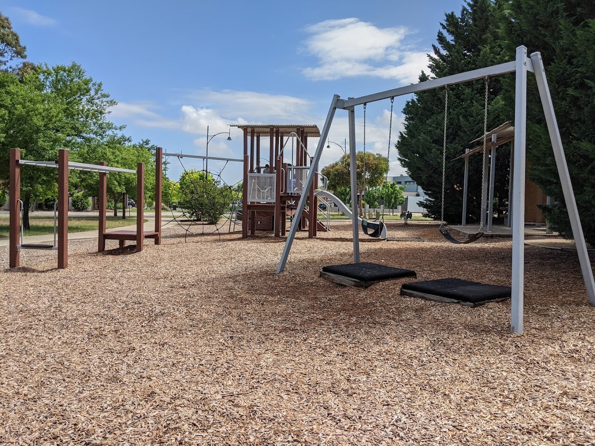 Cranwell Park Dog Off Leash Area is a spacious and versatile public park located in Australia, offering a variety of recreational facilities for both pets and people. The park features expansive, well-maintained grassy fields that provide ample room for dogs to run and play off-leash. A black chain-link fence partially encloses certain areas, though the overall space feels open and integrated with the surrounding natural landscape. Facilities include multiple children's playgrounds with woodchip surfaces, an outdoor fitness station, and several park benches for seating. The park is characterized by its natural beauty, featuring large eucalyptus trees that provide scattered shade, and it borders a scenic river with a viewing platform. The ground surface is predominantly natural grass, with woodchips and sand used in specific activity zones. The atmosphere is peaceful and family-friendly, catering to dog owners, fitness enthusiasts, and families alike. While specific dog-related amenities like water stations or waste bags aren't explicitly prominent in every view, the large open spaces and existing infrastructure make it a popular destination for pet exercise.