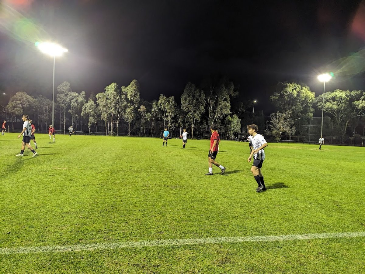 Kevin Bartlett Reserve is a sprawling multi-purpose recreational facility located in Australia, offering a variety of amenities for both humans and their canine companions. The park is characterized by its vast, well-maintained grassy fields, which serve as both sports pitches for soccer and cricket and as expansive off-leash areas for dogs to run freely. Mature eucalyptus trees line the perimeter, providing natural shade and a scenic backdrop. For families, there is a modern playground featuring swings, climbing frames, and slides, with some sections protected by blue and yellow shade sails. The sports fields are equipped with professional-grade floodlighting, allowing for evening matches and late-day dog walks. While the sports areas and nearby courts feature chain-link fencing, the park maintains an open, airy feel. On-site facilities include picnic tables and benches situated near the play areas, fostering a community atmosphere. The ground surface is primarily natural grass, though the playground uses soft-fall materials. The reserve's proximity to a rocky coastline adds to its appeal as a diverse outdoor destination for exercise and relaxation.