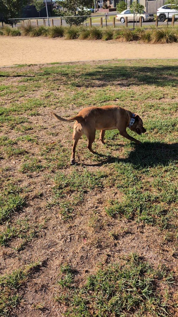 Good size enclosed park with bags, rubbish bin and 2x water taps available. Dogs enjoy free run and the park is close to a playground and BBQ area. My dog loves it.