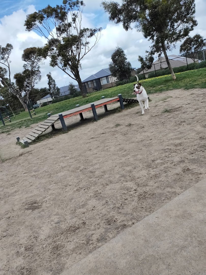 Pasadena Fenced Dog Park offers a generous and secure environment for canine exercise and socialization. The facility is fully enclosed by sturdy black chain-link fencing, making it an ideal off-leash destination. The terrain is predominantly flat with gentle slopes, featuring a combination of natural grass and sandy dirt surfaces. A highlight of the park is the inclusion of wooden agility equipment, such as ramps and elevated platforms, which provide mental and physical stimulation for dogs. For owners, the park provides several seating options, including benches and a sheltered rest area along a paved walking path. While mature trees offer some natural shade, the park maintains an open, airy feel. It is situated within a larger community precinct that boasts a modern playground, scenic boardwalks over wetlands, and public toilet facilities. The overall atmosphere is welcoming and well-maintained, catering to local residents and their pets.
