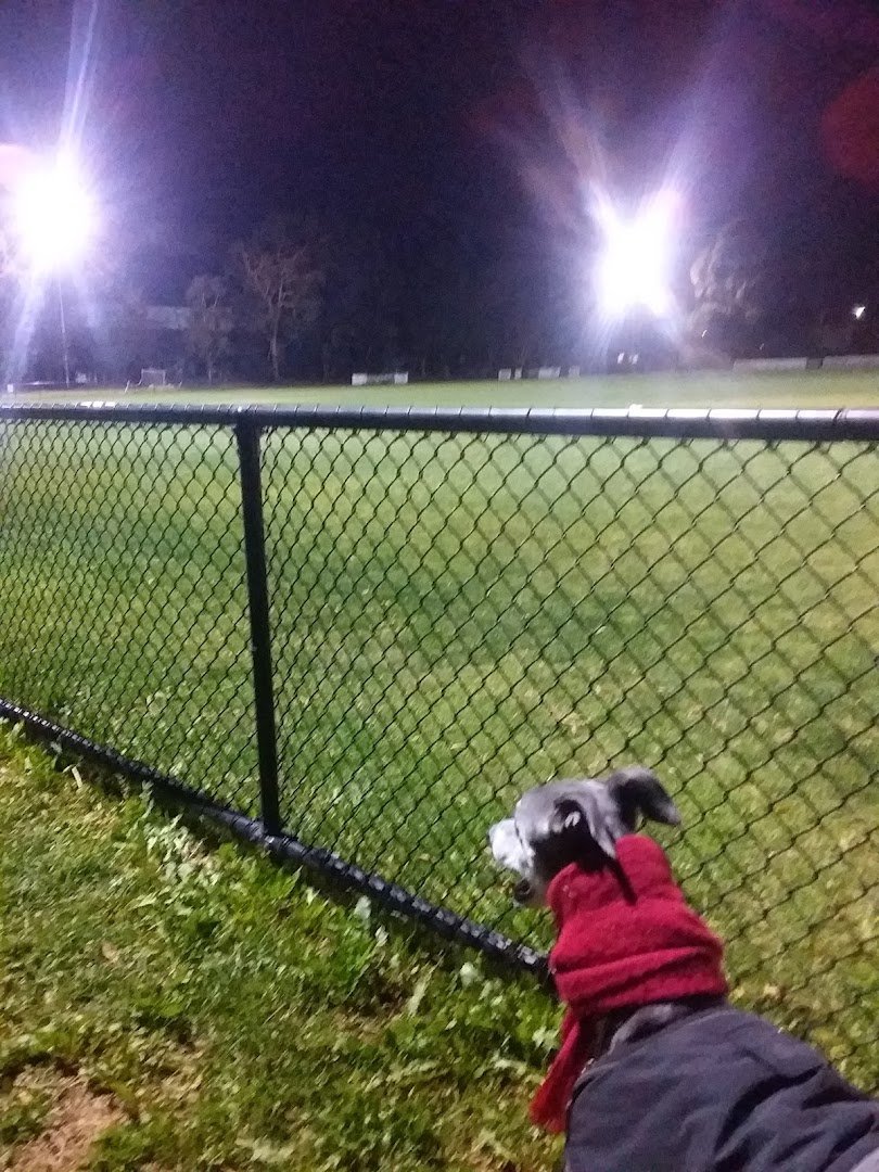 Fletcher Longfellow Park is a spacious and versatile community park in Australia that offers a variety of environments for dogs and their owners. The park features expansive, well-maintained grassy fields, including a large sports oval equipped with floodlights for evening use. Mature trees are scattered throughout the grounds, providing ample natural shade for relaxation. Facilities include several park benches and a dedicated water fountain for hydration. A paved and gravel path network winds through the park, making it accessible for walkers. The park's landscape is diverse, bordering a natural waterway with lush vegetation, offering a more rustic experience. While chain-link fencing is present around certain sections like the sports field, the overall area feels open and integrated into the surrounding neighborhood. The atmosphere is peaceful and scenic, catering to both active play in the large open spaces and quiet moments under the trees or by the river.