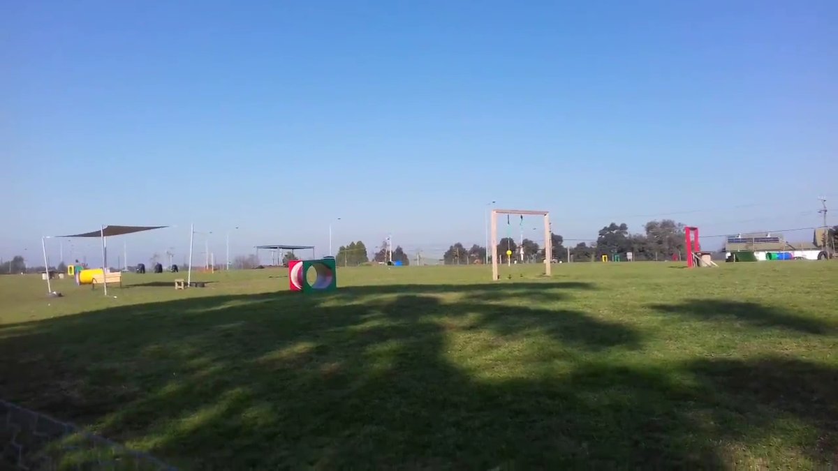 Doggy Play Park in Australia offers an expansive and well-equipped environment for canine exercise and socialization. The park features vast open grassy fields, providing ample room for dogs to run off-leash. A standout feature is the extensive range of agility equipment, including tunnels, hoops, tires, and jumps, catering to active dogs. For a unique sensory experience, the park even includes a ball pit. The terrain is mostly flat with some gentle slopes, primarily covered in natural grass, though paved pathways are also present for easy accessibility. The facility is securely enclosed with chain-link fencing, often divided into separate sections to manage different dog sizes or activities. Shade is plentiful, provided by both mature trees in certain areas and man-made structures like pavilions and shade sails over seating areas. Visitors can find benches and picnic tables for relaxation while their pets play. Practical amenities include trash cans for waste disposal. The overall atmosphere is vibrant and community-focused, making it a premier destination for dog owners seeking a comprehensive play space.