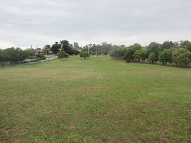 Zerbes Reserve Dog Off Leash Area is a sprawling, multi-purpose public park located in a suburban setting. The most prominent feature is its vast, open grassy field, which provides an extensive area for dogs to run and play off-leash. The terrain is not flat, featuring gentle slopes and undulating hills that add variety to the landscape. While the park lacks a dedicated perimeter fence specifically for dogs, its sheer size and natural boundaries offer a sense of enclosure. The ground surface is primarily well-maintained grass, suitable for various activities. For human visitors, the park includes several paved walking paths, a playground area, and a sports court, as seen from aerial perspectives. Mature trees are abundant, particularly along the edges and paths, offering significant natural shade throughout the day. Seating is available in the form of benches placed along the walkways. The atmosphere is peaceful and open, making it a popular spot for local residents and their pets. There are no visible signs of specialized dog facilities like agility equipment or separate fenced sections for different dog sizes in the provided images.