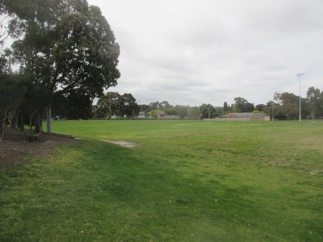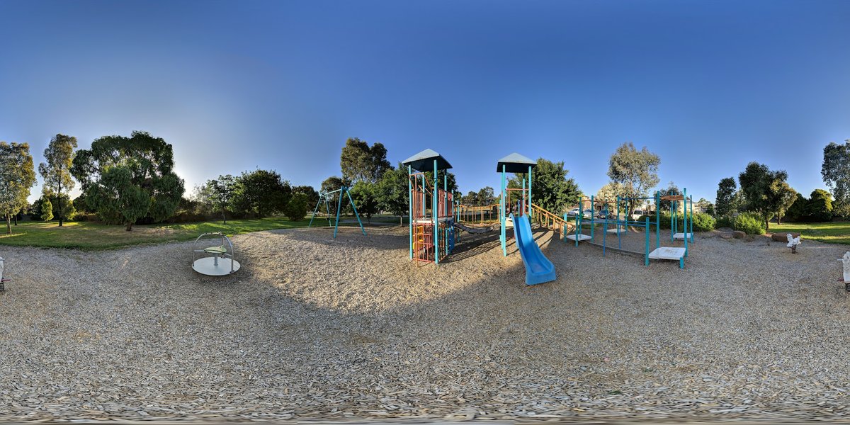 This spacious dog park in Australia offers a large, open grassy field ideal for off-leash exercise and socialization. The entire perimeter is secured with black chain-link fencing, featuring gated entry points for safety. One of the park's standout features is its comprehensive agility course, which includes A-frames, various hurdles, and circular hoops, providing mental and physical stimulation for active dogs. For owners, the park provides several seating options, including standalone benches and covered picnic pavilions that offer relief from the sun. Mature trees scattered throughout the area provide additional natural shade. A dedicated water station with a tap and bowl is available to keep pets hydrated. The park is conveniently located next to a public playground, making it a family-friendly destination. While the primary surface is well-maintained grass, some dirt patches are visible in high-use areas. The presence of trash cans helps maintain cleanliness. Overall, the park provides a well-rounded environment with ample space for both high-energy play and relaxed social interaction.