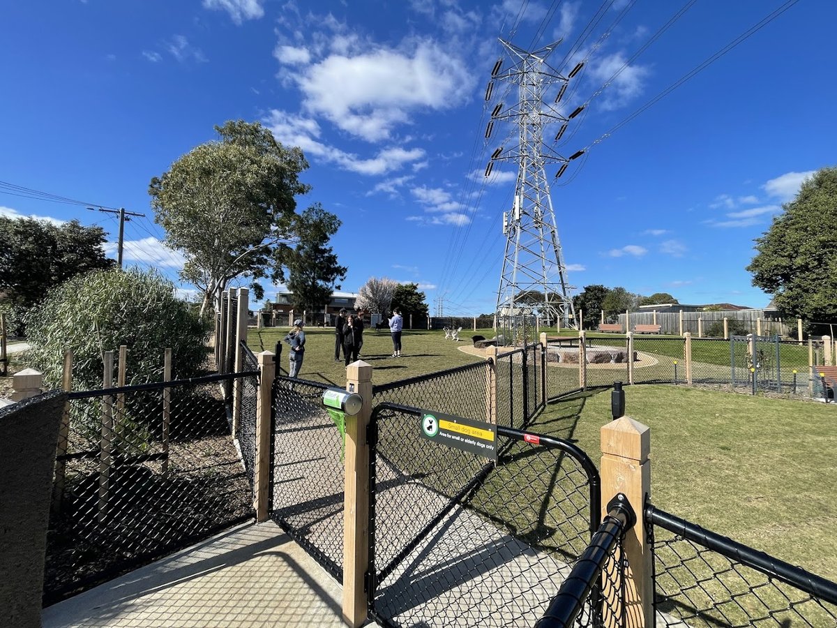 Clean, open fenced dog park. Separated big dog and small dog areas. Everyone who ive seen there has been super friendly even with my "learning g to socialise pup" barking his little head off. Great place highly recommended.