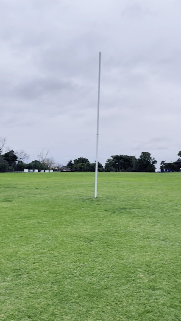 Delacombe Park Dog Off Leash Area is a spacious and well-equipped community park located in Australia. It features a vast, open grassy field suitable for off-leash exercise and play, which appears to be part of a larger multi-use sports reserve, complete with goal posts. A standout feature is the dedicated, fully fenced dog agility zone, which contains various training equipment such as ramps, tunnels, and weave poles on a durable surface. For human visitors, the park provides multiple seating options, including several benches and a picnic table set on concrete pads for comfort. The park also includes a children's playground with a wood-chip surface and a wooden play structure, making it a versatile family destination. The landscape is characterized by large expanses of green grass, some gentle slopes, and mature trees that provide scattered shade throughout the day. Tall lighting poles are visible across the fields, indicating the area is likely used for sports or exercise during low-light hours. The overall atmosphere is open, clean, and family-friendly, catering excellently to both pet owners and the general public.