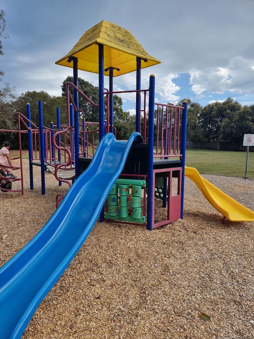 Woodside Avenue Dog Off Leash Area is a spacious and versatile community park located in Australia, offering a mix of recreational facilities for both pets and families. The park is characterized by its expansive, open grassy fields that provide ample room for dogs to run and play freely. The terrain features a combination of flat expanses and gentle slopes, bordered by mature trees that offer pockets of natural shade. For families, the park includes well-maintained playground areas with colorful slides and wooden climbing structures situated on protective wood chip surfaces. A prominent feature is the large sports oval, which is enclosed by chain-link fencing and equipped with tall goal posts and floodlighting, suggesting the area is used for local sports. A paved walking path meanders through the park, making it accessible for strollers and joggers. While the sports field is securely fenced, the off-leash dog area transitions into broader parkland. Seating is provided via park benches scattered throughout the space. The ground surface is predominantly natural grass, which remains the primary area for off-leash activity.