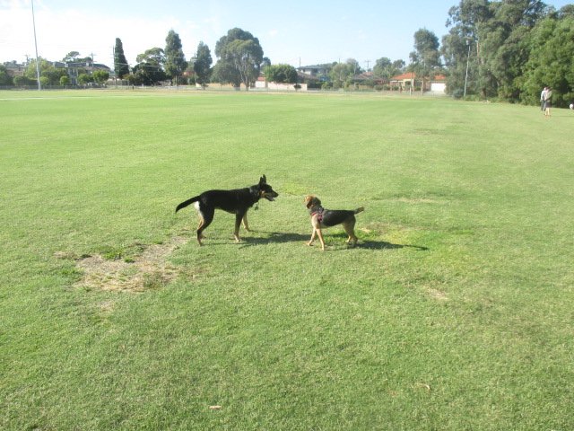 Park Reserve Dog Off Leash Area is a multi-functional community space featuring expansive green areas. The park includes a large, well-maintained sports oval, which serves as a primary off-leash zone for dogs. The terrain is predominantly flat grass, though some sections feature gentle slopes and natural undulating landscapes. Facilities are diverse, catering to various recreational needs; there is a playground for children, a basketball half-court, and several tennis courts nearby. For dog owners, the park offers a mix of open fields and more secluded, tree-lined corridors, providing ample space for exercise and socialization. While the park is integrated into a residential neighborhood, it maintains a natural feel with a creek running through it and numerous mature trees providing pockets of shade. Benches are strategically placed throughout the area for rest. The ground surface is almost entirely natural grass, well-suited for running. Although residential boundaries are fenced, the off-leash area itself appears to be an open-plan park rather than a specifically enclosed dog run. The atmosphere is peaceful and community-oriented, offering a large, versatile space for both active play and quiet walks.
