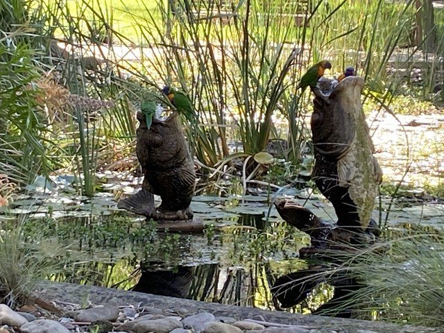 Pridmore Park Dog Off Leash Area is a sprawling, multi-use recreational space in Australia, characterized by its vast, well-maintained green lawns and serene natural elements. The park features a massive open field, ideal for dogs to run freely and engage in high-energy activities like fetch or social play. While the main off-leash area appears to be unfenced, it is bordered by mature trees that provide ample natural shade and a sense of enclosure from the surrounding residential area. The ground surface is primarily lush grass, kept vibrant by an integrated sprinkler system visible in the mornings. For human visitors and their pets, the park offers essential amenities including a dedicated water fountain equipped with a dog bowl at its base. A fenced-in playground area provides a safe space for children, featuring modern equipment, benches, and nearby picnic tables. The park's atmosphere is tranquil, enhanced by a decorative pond with birdlife and ornamental statues. Paved walking paths meander through the grounds, making it accessible for strollers. Tall lighting poles suggest the area is usable during twilight hours, making it a versatile community hub.