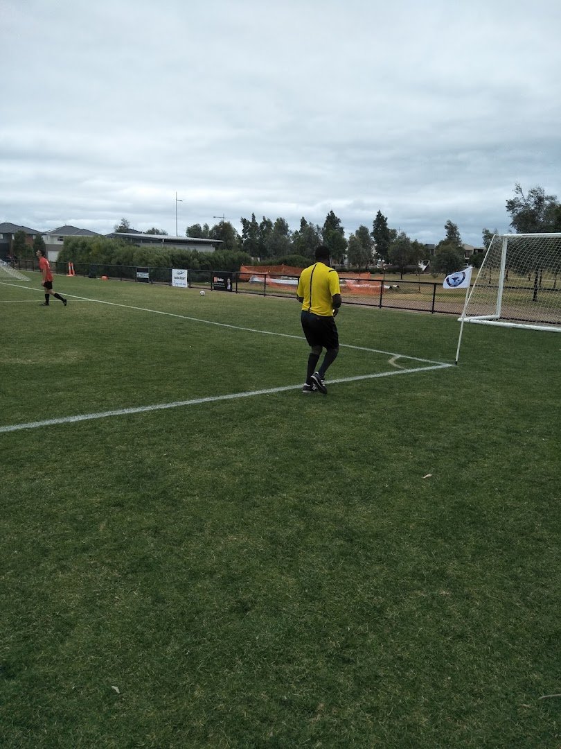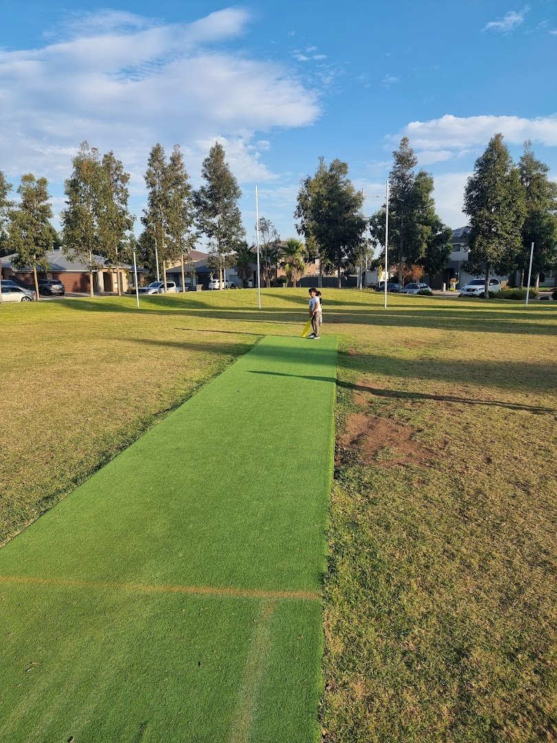 The Off Leash Dog Area D1 Drainage Reserve, situated between Mossfiel and Callander in Australia, provides a versatile outdoor space for local residents and their pets. The park is characterized by its expansive, open grassy fields that serve as a large off-leash area, allowing dogs plenty of room to run and play. Mature eucalyptus and other native trees line the perimeter, offering significant natural shade and a pleasant atmosphere. A key feature is the dedicated fenced-in section, which ensures a secure environment for dogs that may need more containment. Inside this fenced area, a water fountain is available to keep pets hydrated, and a gravel path winds through the space. The ground surface throughout the park is a mixture of natural grass, dirt patches, and gravel, reflecting its dual use as a drainage reserve. Adjacent to the dog-friendly zones are community recreational facilities, including a soccer pitch and a cricket field with an artificial turf pitch. While the park is primarily a functional green space, its combination of open fields and secure fencing makes it a popular spot for the local community.
