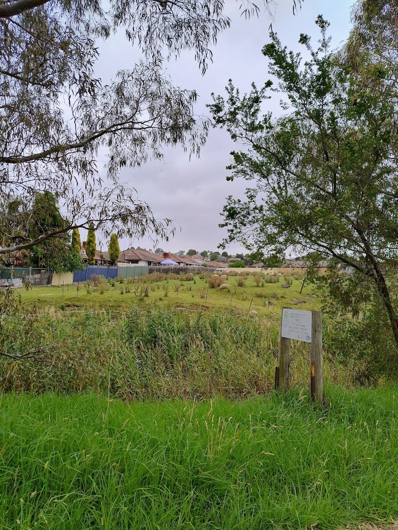 Arch Gibson Reserve Dog Off Leash Area is a sprawling, naturalistic green space located in a suburban setting. The park is characterized by its vast, open grassy fields that provide ample room for dogs to run and play freely. A defining feature of the reserve is the abundance of mature eucalyptus trees scattered throughout the landscape, offering significant natural shade for both pets and their owners. The terrain is mostly flat with some gentle slopes, and the ground is covered in natural grass, which appears slightly dry in some sections. While the reserve is bordered by residential fencing and some paddock-style enclosures in certain areas, it does not appear to be a fully enclosed or gated dog park, suggesting an open-range feel. Facilities are minimal, with no visible water stations, benches, or specialized agility equipment in the provided images. A paved walking path meanders through the area, and a regulatory sign is posted near a more overgrown, reedy section of the park. The overall atmosphere is peaceful and uncrowded, making it an ideal spot for long walks and off-leash exercise in a natural environment.