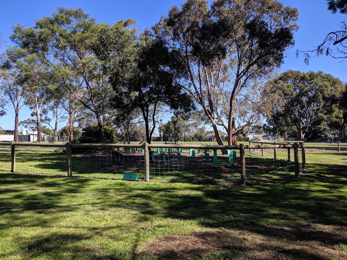 SL Butler Reserve Dog Off Leash Area in Australia offers a serene and expansive environment for dogs and their owners. The park is characterized by its vast, well-maintained grassy fields, providing plenty of room for off-leash exercise and play. Numerous mature trees are scattered throughout the reserve, offering significant natural shade and creating a pleasant, park-like atmosphere. A distinctive feature is the presence of internal wooden post and wire fencing used to protect young saplings and conservation zones. Beyond the open fields, the reserve includes a picturesque wetland area complete with a wooden boardwalk and viewing platform, ideal for a quiet stroll. For families, there is a dedicated playground with colorful climbing structures and swings situated on a safe woodchip surface. While the park feels open and natural, it includes basic amenities like picnic tables for visitors to enjoy. The terrain is mostly flat, making it accessible for various activities. Overall, it is a versatile community space that balances dog-friendly areas with nature conservation and family-friendly facilities.