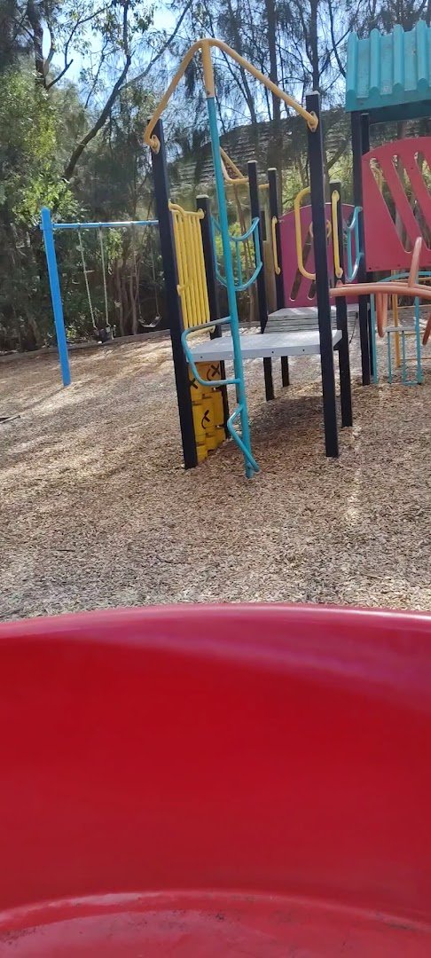 Mount Eliza Regional Park Dog Off Leash Area offers a vast and scenic environment for dogs to exercise and socialize. The park is characterized by its expansive open grassy fields, which provide ample room for long-distance running and games of fetch. Certain sections are securely enclosed with sturdy wooden post and wire mesh fencing, allowing for safe off-leash play. These areas are well-complemented by the presence of mature eucalyptus trees that offer significant natural shade, creating a comfortable atmosphere for both pets and owners. The terrain is predominantly flat with gentle undulations, bordered by picturesque forested hills. Beyond the dog-specific areas, the park includes a well-maintained children's playground featuring colorful equipment like swings and slides on a woodchip base. Picnic tables are scattered throughout, encouraging families to stay and enjoy the natural surroundings. While the primary surface is grass, there are also established dirt tracks for walking. Convenient parking is located adjacent to the fenced zones, making the park easily accessible for visitors looking for a spacious, rural-feeling retreat for their dogs.