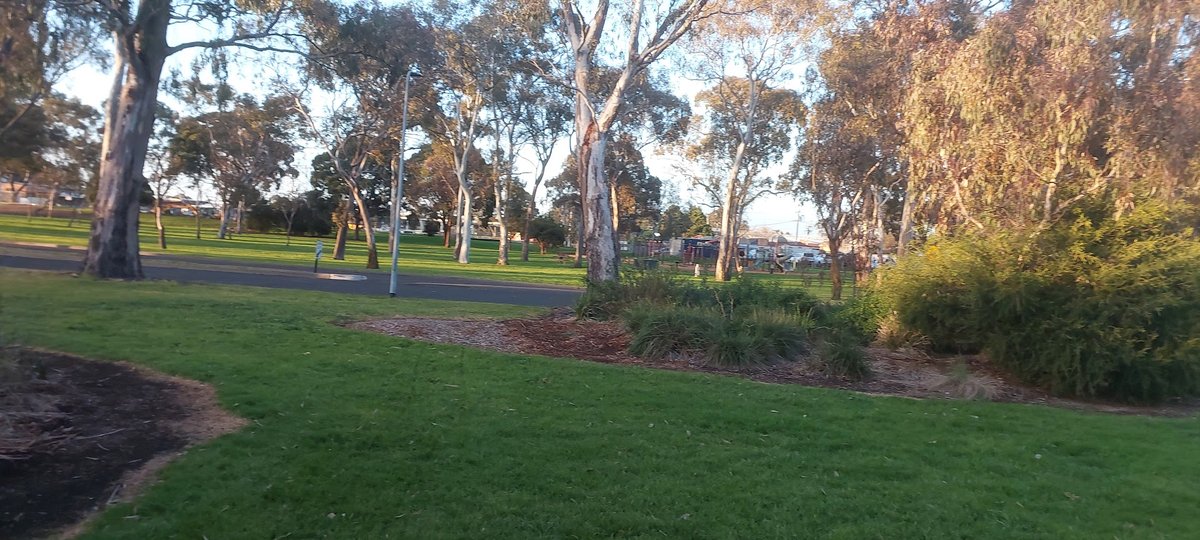 Ross Reserve Dog Off Leash Area, which appears to incorporate or be adjacent to Greaves Reserve based on local signage, is a sprawling public park characterized by its vast open spaces and mature greenery. The park features a designated off-leash zone, clearly marked by informative signage that outlines the rules for pet owners. The primary ground surface is natural grass, which is well-maintained across the large, gently sloping fields. Ample shade is provided by numerous established trees, including large eucalyptus specimens, and a sturdy wooden shelter equipped with seating. For families, the park boasts a significant, modern playground area featuring a tall spiral slide and complex climbing structures set upon a wood-chip base. Seating is plentiful, with various benches scattered throughout the grounds, some positioned under the canopy of large trees for comfort. The perimeter is defined by a mix of chain-link and wooden fencing. While specific amenities like water fountains or waste bag dispensers are not explicitly visible in these views, the park's size and variety of environments offer a high-quality space for recreation and dog exercise.