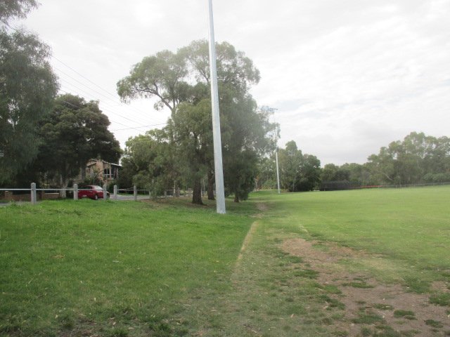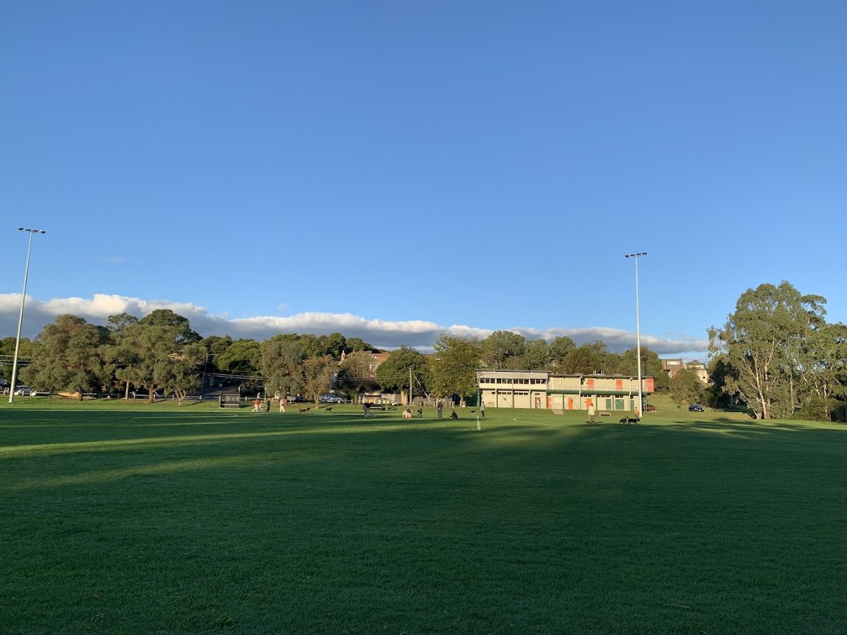 AH Capp Reserve is a sprawling, multi-use public park located in Australia, featuring a popular designated dog off-leash area. The reserve is characterized by its expansive, well-maintained grassy fields that serve as both sports ovals and open space for pets to roam. These fields are equipped with tall floodlights, suggesting the area is used for evening activities. The park's landscape is dotted with mature, leafy trees that offer ample natural shade, especially over the paved walking paths and the picnic areas which include sturdy tables for visitors. For families, there is a visible playground area with various equipment. While the park features some perimeter wooden fencing and low metal railings to separate the sports fields from walking tracks, it is not a fully enclosed or double-gated dog park. Natural elements like large rock clusters add visual interest to the terrain, which is mostly flat with some gentle slopes. The overall atmosphere is peaceful and community-focused, providing a large, open environment for dogs to exercise and socialize alongside other park users.
