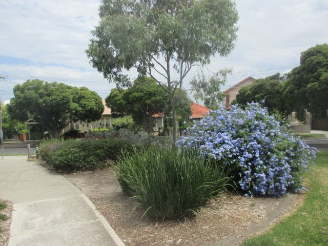 GH Mott Reserve is a spacious community park in Australia featuring a large, open grassy field that serves as a popular off-leash area for dogs. The park is well-equipped with various amenities to enhance the visitor experience, including multiple wooden benches for resting and a picnic table conveniently situated under the dense shade of mature trees. For families, there is a dedicated playground area featuring swings and climbing structures. The ground surface is primarily natural grass, which appears generally well-maintained, though some low-lying areas near the soccer goals may collect water after rain. The park's perimeter is partially defined by a mix of wooden residential fencing and low metal rails around the sports field. Large decorative rocks and landscaped garden beds with flowering shrubs like plumbago add to the park's aesthetic appeal. While it offers a vast, expansive space for dogs to run and play, the images do not show a fully enclosed, dedicated dog-only fenced area, indicating it is a shared public space. The overall atmosphere is peaceful and suburban, providing a versatile environment for recreation.