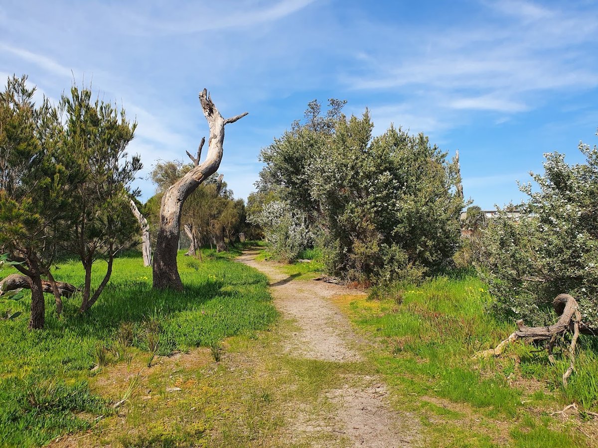 Kananook Reserve Dog Off Leash Area offers a spacious and versatile environment for both pets and their owners. The primary dog area features a large, well-maintained grassy field enclosed by secure chain-link fencing, allowing dogs to run and play safely off-leash. For convenience, the park is equipped with essential amenities including a water fountain for hydration, trash cans for waste disposal, and benches for owners to rest. Beyond the dedicated dog zone, the reserve is a multi-functional community hub. It includes a modern playground with multiple structures and slides set on a woodchip surface, catering to families with children. A public toilet block is conveniently located on-site. Nature lovers can enjoy dirt walking paths that wind through areas with mature trees, providing natural shade and a scenic atmosphere. Additionally, the reserve hosts a community garden with raised vegetable beds. Its proximity to the beach adds to its appeal as a comprehensive outdoor destination. The overall atmosphere is active and welcoming, making it a popular spot for local residents to exercise their dogs and enjoy various recreational activities.